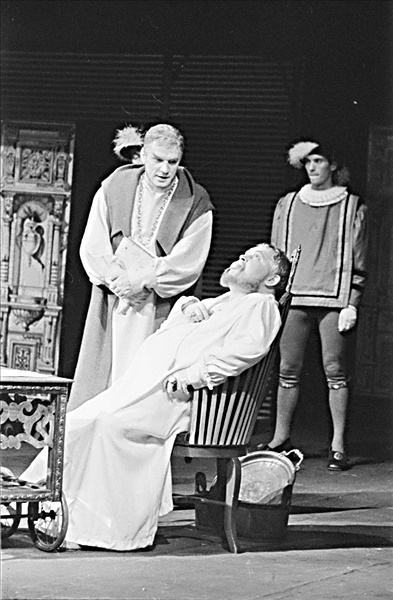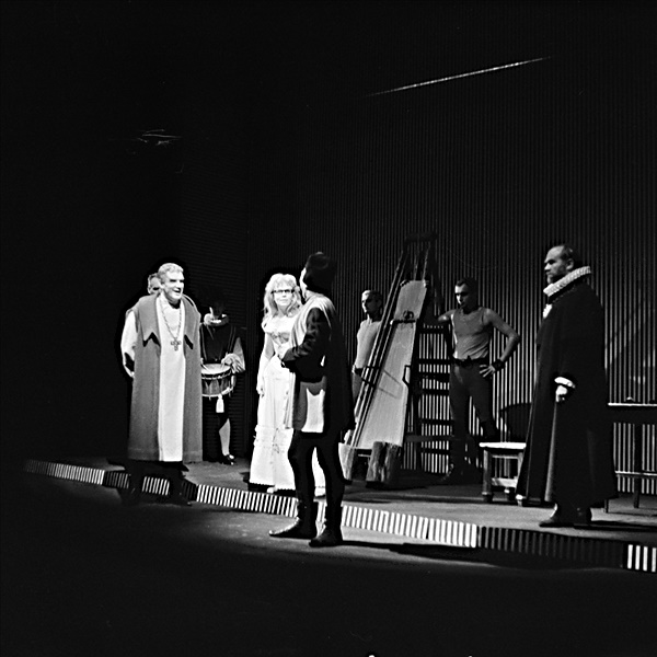 Jindřich VIII.:Vladimír Krška (alternation); Oldřich Musil (alternation); Kateřina Parrová:Vlasta Chramostová; Thomas Seymour:Jan Schánilec; Henry Howard:Vlastimil Fišar (alternation); Petr Haničinec (alternation); Thomas Granmer:Jaroslav Moučka; Staphan Gardiner:Vladimír Hlavatý; Vévoda z Norfolku:Oldřich Lukeš; Wriothesley:Karel Houska; Mary Suffolková:Hana Blachutová (j.h.); Karolina Slunéčková (alternation); Anna Askewová:Věra Budilová (alternation); Ludmila Vostrčilová (alternation); Margareta:Věra Budilová (alternation); Ludmila Vostrčilová (alternation); Parapo:Gustav Nezval; Kuchař:Svatopluk Skládal; Komorník:Vlastimil Pinkas