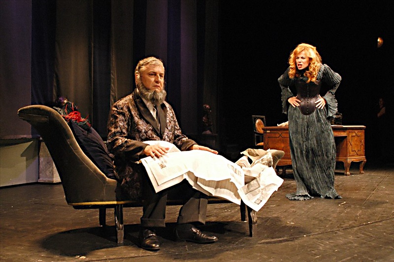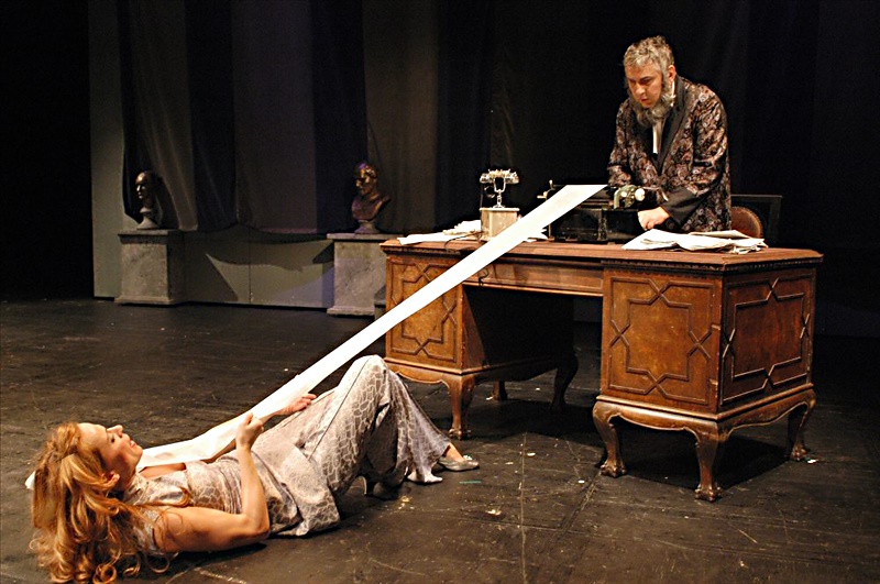 Dr. Nývlt, divadelní režisér:Miroslav Donutil; Zdena Nývltová, jeho žena:Jana Boušková (alternation); Zuzana Šavrdová (alternation); Dr. Šalda, spisovatel:Miroslav Donutil; Mexbauerová, jeho žena herečka:Diana Mórová (j.h.); Bard:Josef Vinklář; Nápověda:Jana Boušková (alternation); Zuzana Šavrdová (alternation)