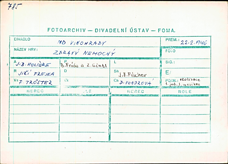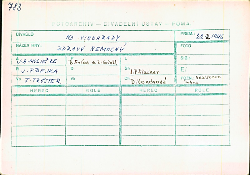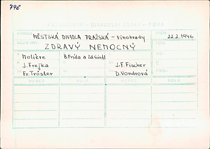 Playwright/Dramatist:Molière; Translation:Bedřich Frida; Translation:Zdeněk Gintl