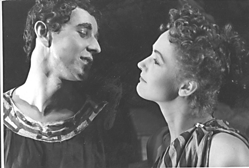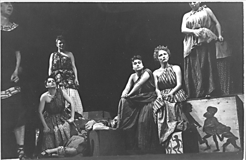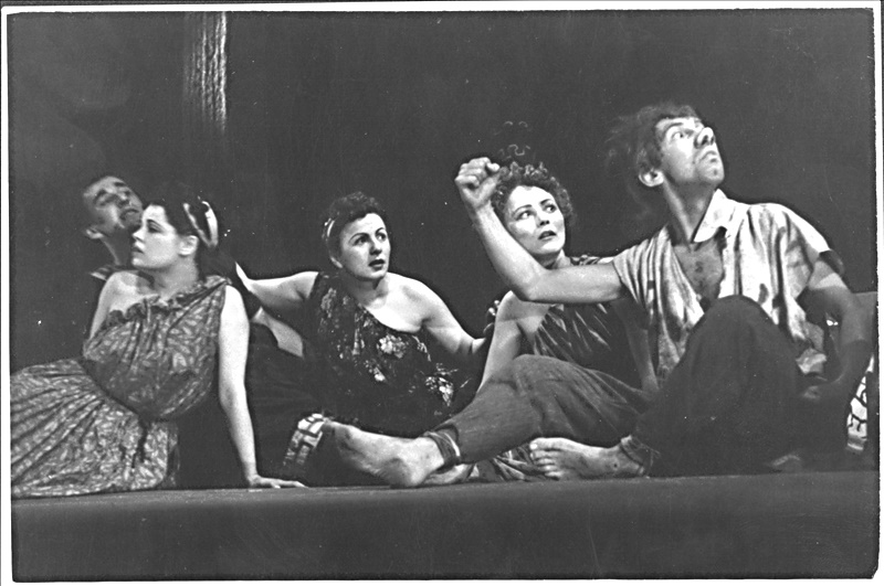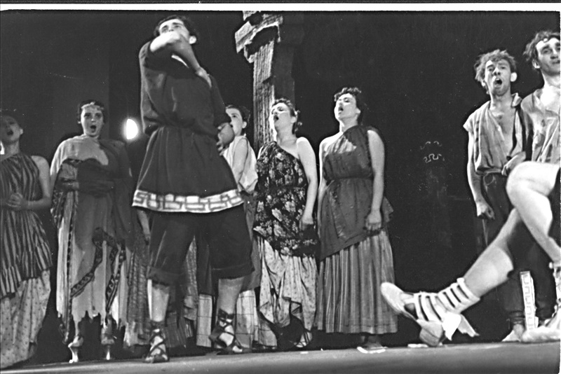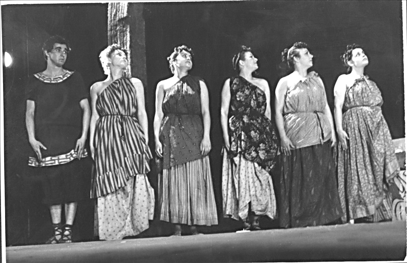 Trygaios:Václav Lohniský; 1.sluha Trygaiův:Luděk Kopřiva; 2.sluha Trygaiův:Zdeněk Jiřičný; Hermes:Václav Špidla; Běs války:Jaroslav Nedvěd; Větřinos:Bohumil Bezouška; Zbrojař:Oldřich Musil; Paní Obec:Jana Mikulová; Sýrařka:Eva Šmeralová; Hlídač na Akropoli:Jiří Vala; Thalia:Zora Jiráková; Kyréné:Vlasta Vlasáková; Elektra:Dagmar Veselá; Persefoné:Viola Zinková; Filomela:Libuše Drboutová