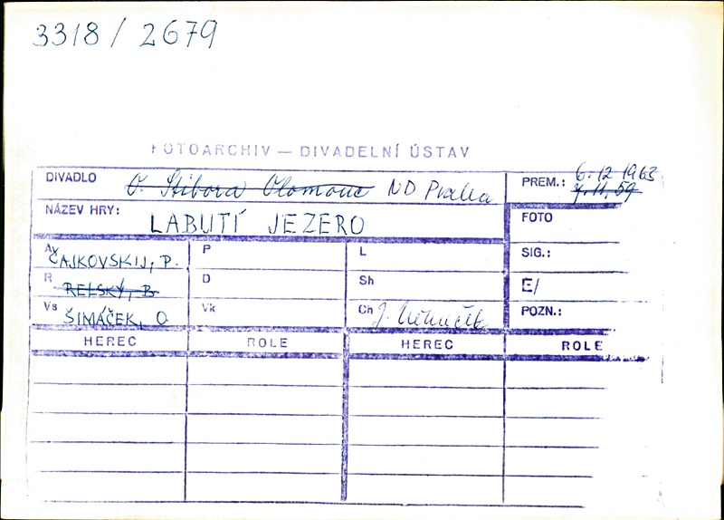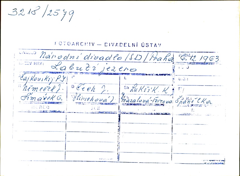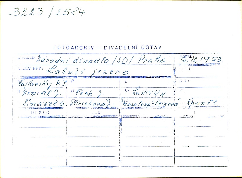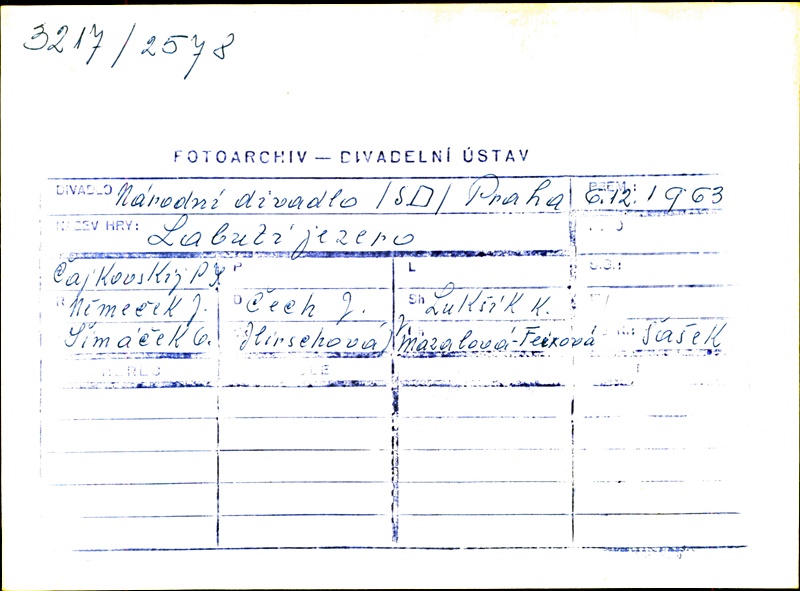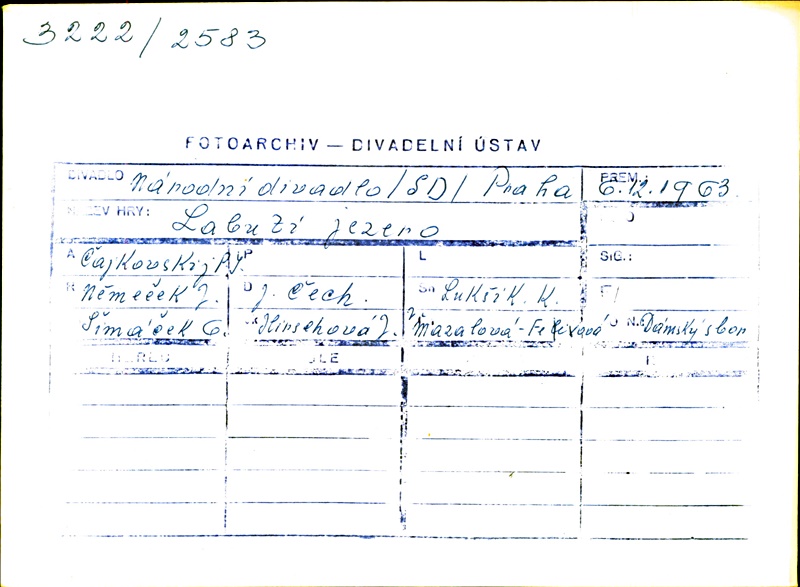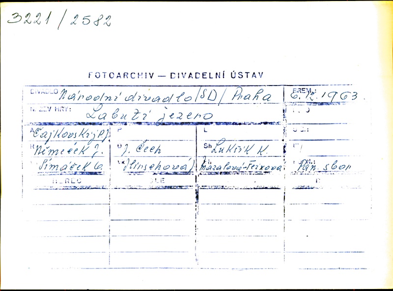 Choregrapher:Jiří Němeček; Choregrapher:Růžena Mazalová; Stage Director:Jiří Němeček; Stage Director:Růžena Mazalová; Conductor:Josef Čech; Set Designer:Oldřich Šimáček; Costume Designer:Jindřiška Hirschová