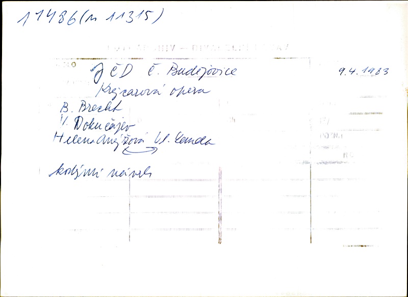 adaptace:Bertolt Brecht; skladatel:Kurt Weill; překladatel:Rudolf Vápeník; překladatel textu písní:Ludvík Kundera