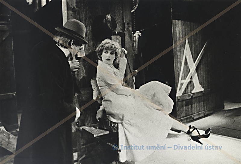 Macheath, zv. Mackie Messer:Ivan Klička (alternace); Jan Miller (alternace); Jonath.Jeremiah Peachum:Zdeněk Jarolímek; Celie Peachumová:Jana Vasmutová; Polly:Daniela Bambasová; Brown zv. Tygr Brown:Karel Soukup; Jenny "Hampejznice":Věra Papírková; Smith:František Kokejl; Pastor Kimball:Karel Roden st.; Filch:Josef Bulík; Jarmareční zpěvák:Ladislav Bambas