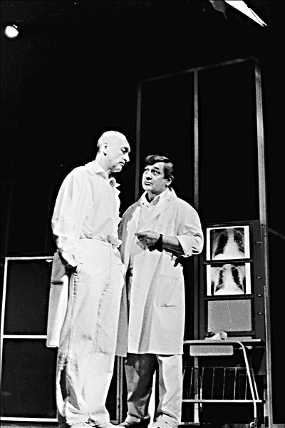Profesor:Jiří Adamíra; Docent:Vilém Besser; Chirurg:Josef Vinklář; Asistent:Jiří Klem; Vrchní sestra:Věra Kubánková; Lékařka:Věra Vlčková; Ředitelka:Eva Klepáčová; Pacientka:Růžena Merunková; Manžel pacientky:Dalimil Klapka; Sekretářka:Marie Marešová; Adeptka:Marta Vančurová; Sanitář:Václav Kaňkovský; Pacient:Bohuslav Pastorek