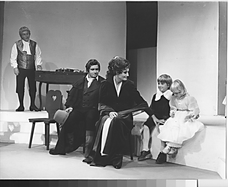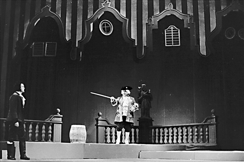 Hrabě Vilém z Harasova:Arnošt Klíma; Bohuš z Harasova:Jan Bajer (alternation); Pavel Červinka (alternation); František Dáňa (alternation); Adolf z Harasova:Jan Bajer (alternation); Vladimír Šorsák (alternation); Julie:Zuzana Jekkelová; Julie:Alena Žaloudková; Filip, purkrabí:Luděk Vele; Jiří:Jiří Ceé; Jiří:Vojtěch Filip; Benda:Stanislav Dašek; Benda:Jaroslav Slováček; Terinka:Oldřiška Procházková; Terinka:Svatava Slavíčková; Lotinka:Věra Janečková