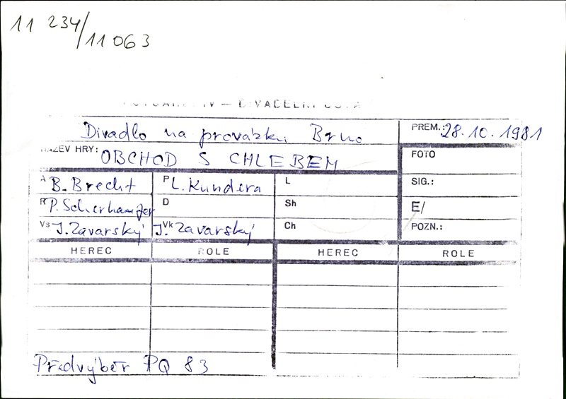 Stage Director:Peter Scherhaufer; Music:Miloš Štědroň; Set Design:Ján Zavarský; Dramaturge:Petr Oslzlý; Co-répétiteur:Ida Kelarová; Co-répétiteur:Miloš Štědroň; Set Design Collaboration:Uljana Studená; Graphic Designer:Ján Zavarský (plakát)