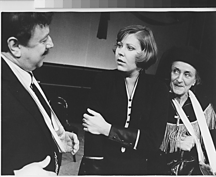 Agaton Arsič, bývalý okr. rada:Ladislav Suchánek; Tanasije Dmitrijevič, obchodní:Ivan Hojar; Proka Purič, úředník obce:Jaroslav Fert; Trifun Spasič, soukromník:Milan Holubář; Míča Stamirovič:Dobroslav Riegl; Dr. Petrovič, advokát:Jiří Tauber; Simka, žena Agatonova:Radka Volková; Vida, žena Tinasijova:Aranka Lapešová; Gina, žena Prokova:Stanislava Klapková; Sarka, vdova:Marie Beránková; Danica:Irena Chalupová; Funebráci:Rudolf Kokeš; Zdeněk Blažek; Miloslav Študent