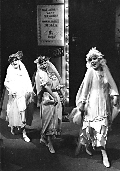 Štorkán ml.:Zdeněk Dvořák; Julínek:Ivo Hyrš; Jarmila:Inka Brendlová; Hustoles:Antonín Smolík; Božka:Libuše Teubnerová; Štorkán st.:Jiří Kalina; Nebuželská:Kateřina Klumparová (alternace); Jarmila Derková (alternace); 1. nevěsta:Irena Chalupová; 2. nevěsta:Alena Röhrlová; 3. nevěsta:Alena Svatošová; Pšáda:Kamil Prachař; Laušman:Radko Choc; Jarda Kapela:Jaroslav Tvrdý (alternace); Jaroslav Sochůrek (alternace); Antonie:Alena Svatošová; Leona:Alena Röhrlová; Anastazie:Irena Chalupová