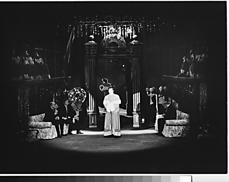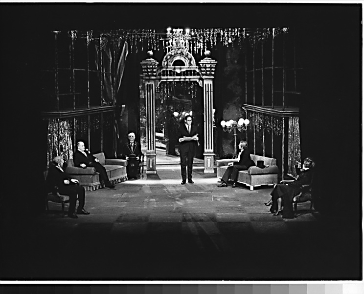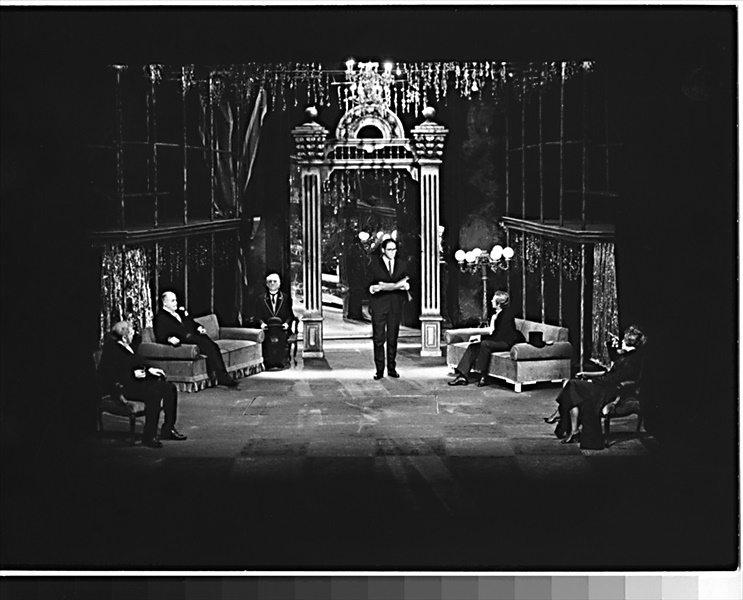 13. hrabě Gurney:Ota Sklenčka; Ceremoniář:Jan Víšek; Daniel Tucker:Svatopluk Beneš (alternation); Jaroslav Cmíral (alternation); Biskup Lampton:Jaroslav Raušer; Baron Charles Gurney:Felix Le Breux (alternation); Václav Voska (alternation); Dinsdale Gurney:Miroslav Masopust (alternation); František Němec (alternation); Baronka Claire Gurneyová:Jaroslava Adamová; Matthew Peake:Štěpán Bulejko; 14. hrabě Gurney:Václav Postránecký; dr. Paul Herder:Eduard Dubský; Paní Treadwellová:Jana Koulová; Paní Piggot-Jonesová:Hana Kreihanslová (alternation); Zora Polanová (alternation); Grace Shelleyová:Libuše Švormová; McKyle:Rudolf Pellar; Kelso Truscott:Karel Pavlík (alternation); Jiří Pick (alternation); Inspektor Brockett:Zdeněk Jelínek; Seržant Fraser:Jan Víšek