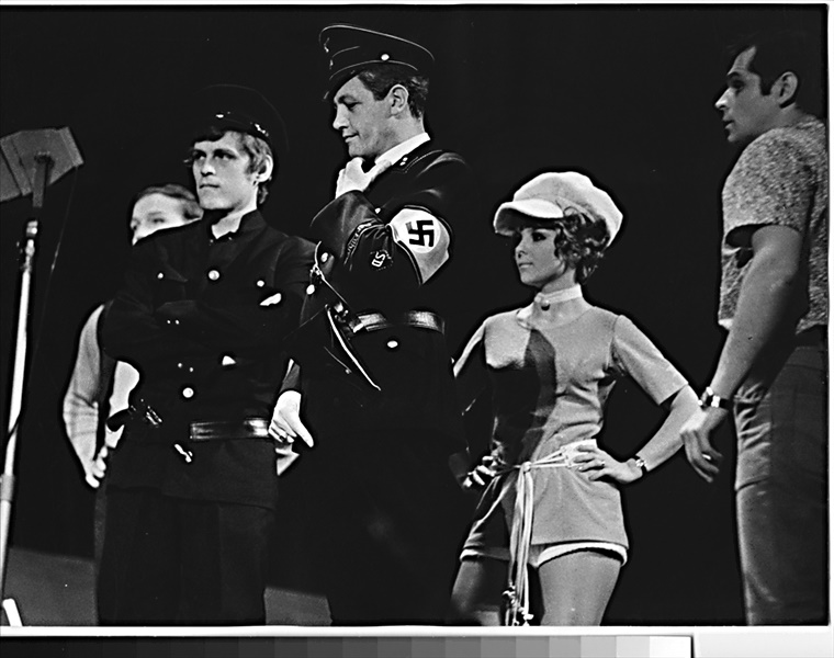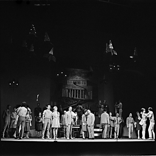 překladatel:Jaroslav Flégr; úprava:Kamil Bednář; texty písní:Kamil Bednář; režisér:I. S. Barabašov (j.h.); režisér:Georgij Ansimov (j.h.); scénický výtvarník:Miloš Tomek; kostýmní výtvarnice:Jarmila Konečná; režijní spolupráce:Leo Spáčil; asistent režie:Josef Janoušek; instrumentace:Vlastimil Hála; dirigent:Karel Vlach; choreograf:Jiří Němeček