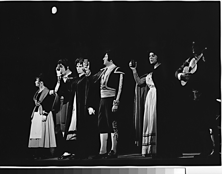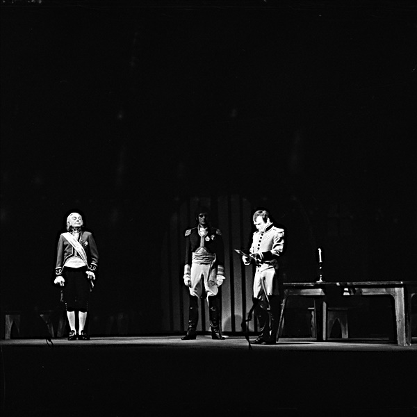 Napoleon Bonaparte:Jaroslav Černík (alternation); Jan Sedliský (alternation); Otakar Žebrák (alternation); Carlos IV.:František Doubrava (alternation); Ivo Gübel (alternation); Josef Haukvic (alternation); Marie Luisa Parmská:Libuše Cincibusová (alternation); Dagmar Rosíková (alternation); Don Godoy:Karel Gult (alternation); Oldřich Král (alternation); Ferdinand:Karel Gult (alternation); Zdeněk Jelen (alternation); Molito:Karel Gult (alternation); Josef Mráz (alternation); Ilja Prokop (alternation); Nina Maria:Anna Bartáková (alternation); Zora Jehličková (alternation); Věra Macků (alternation); Dagmar Rosíková (alternation); Rodrigo:Miloš Bílý (alternation); Karel Fiala (alternation); Milota Holcman (alternation); Zdeněk Matouš (alternation); Manuela:Laďka Kozderková (alternation); Joža Walterová (alternation); Pedro:Leoš Kaltofen (alternation); Jiří Koutný (alternation); Baptiste:Karel Effa (alternation); Jiří Koutný (alternation); Generál Savary:René Gabzdyl (alternation); Karel Hábl (alternation); Jan Sedliský (alternation); Generál Junot:Zdeněk Jelen (alternation); Jaroslav Mikulín (alternation); Talleyrand:Otomar Korbelář (alternation); Josef Mráz (alternation); Ilja Prokop (alternation); Fouché:Josef Janoušek (alternation); Karel Koloušek (alternation); Major de Ragenout:Ladislav Krečmer (alternation); Jaroslav Mikulín (alternation); Etien:Stanislav Šimek (alternation); Jan Šváb (alternation); Juan:Karel Bláha (alternation); Milan Kovář (alternation); Oldřich Král (alternation); Juanita:Pavla Břínková (alternation); Jelena Stříšková (alternation); Marie-Luisa Váchová (alternation); Hostinská:Marie Nováková (alternation); Jiřina Steimarová (alternation); Hrabě Withworth:Jaroslav Černík (alternation); Ladislav Krečmer (alternation); Josef Mráz (alternation); Josef Bonaparte:Miloslav Janovský; Ceremoniář:Jiří Opatrný; Španělský ministr:Ivo Gübel (alternation); František Voborský (alternation); Španělská matka:Helena Loubalová (alternation); Hana Talpová (alternation); Staps:Rudolf Prázdný (alternation); Vlastimil Zavřel (alternation)