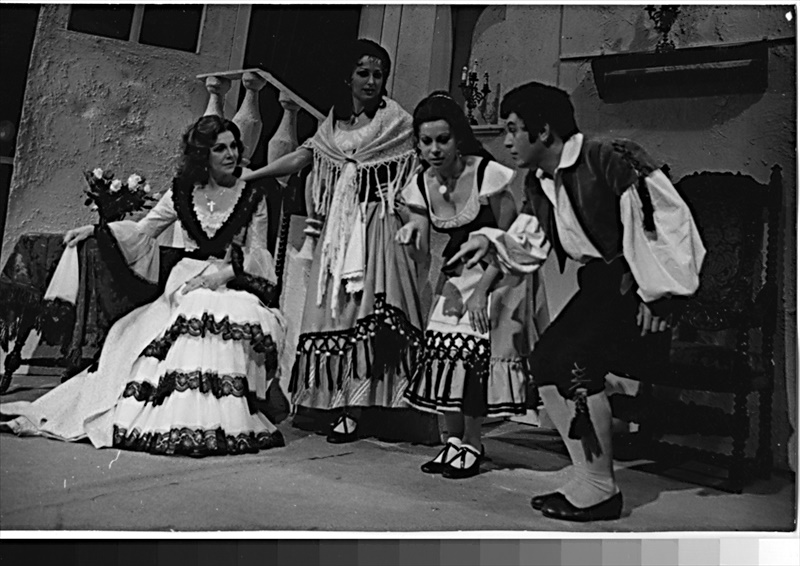 Frasquita:Ludmila Falová (alternation); Táňa Wagnerová (alternation); Lucas:Pavel Stejskal (alternation); Arnošt Svoboda (alternation); Corregidor:Jiří Bíba (alternation); Zdeněk Piechula (alternation); Mercedes:Jitka Krupová (alternation); Jarmila Novobilská (alternation); Garduňa:Otakar Pavlis (alternation); Jaroslav Vojtěchovský (alternation); Laurencie:Milada Horová (alternation); Marie Strnadová (alternation); Chůva:Věra Konečná; Francisco:Jiří Čada (alternation); Lubor Malík (alternation); Toňuelo:Josef Bourek; Juan Lopéz:Karel Čepek; Kostelník:Ladislav Kramosil; Písař:Antonín Jahoda; Manuela:Jarmila Kolářová; Hostinská:Libuše Machačová; Zpěvák:Ondřej Doležal; Hlasatel:Bedřich Hrdý