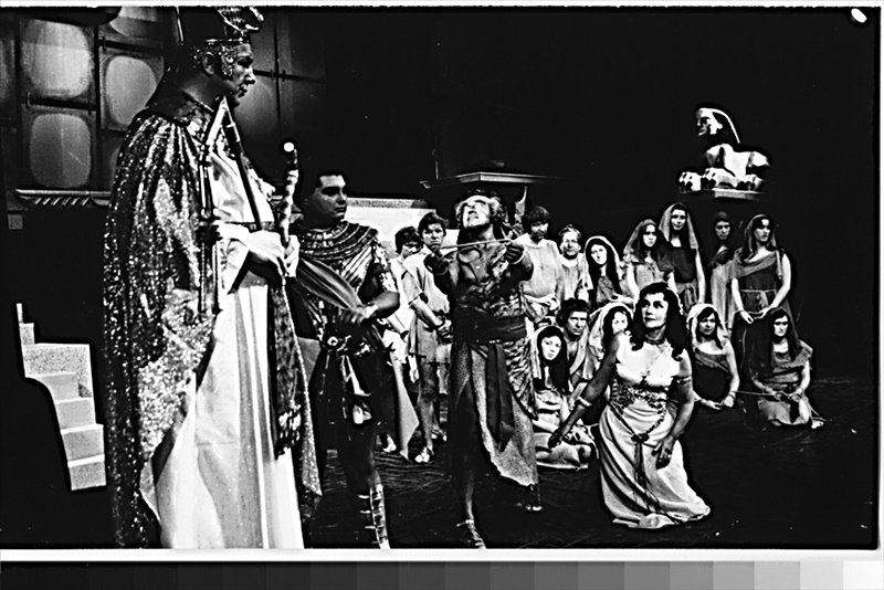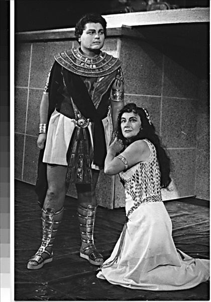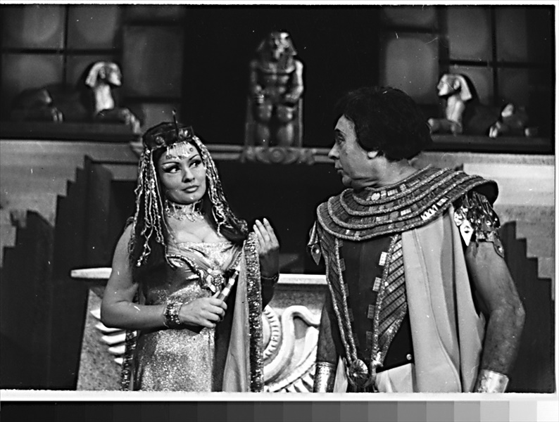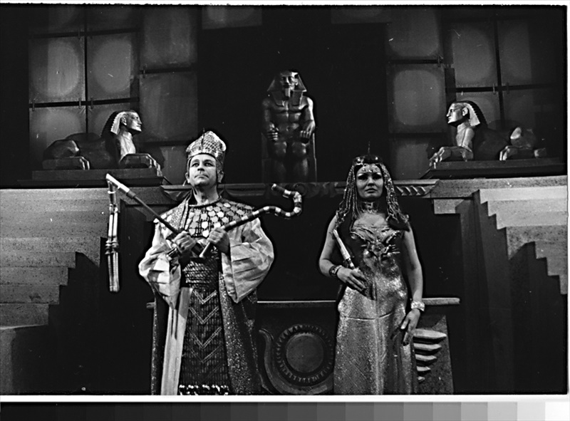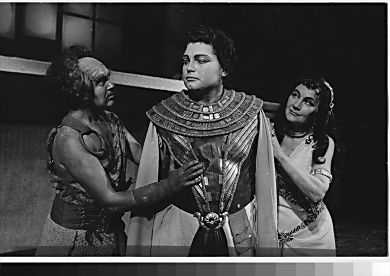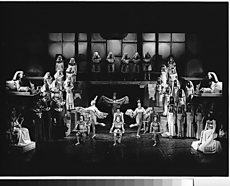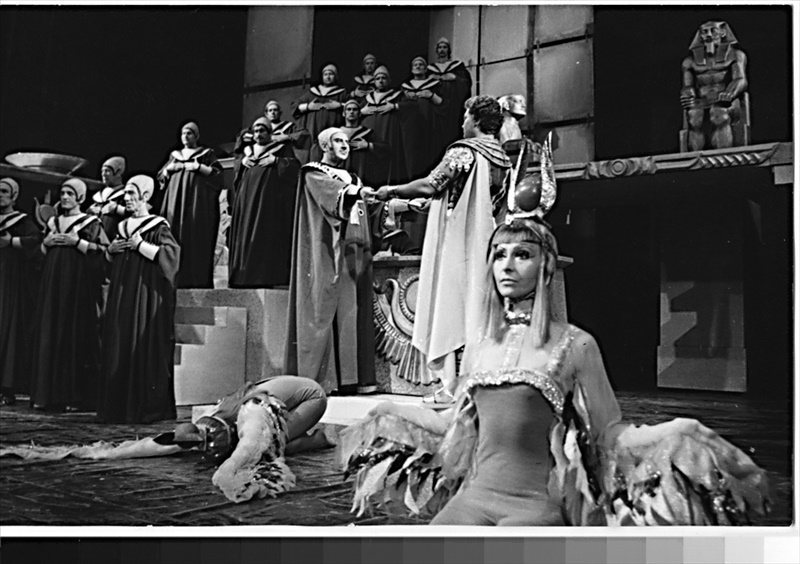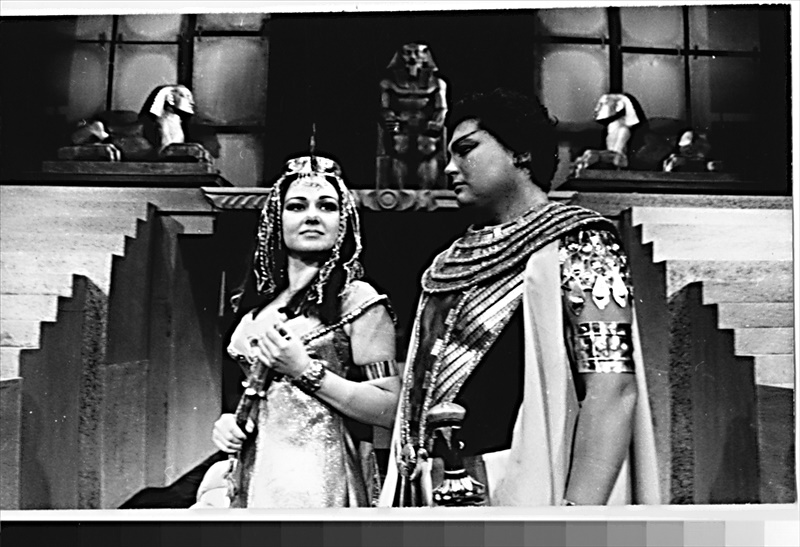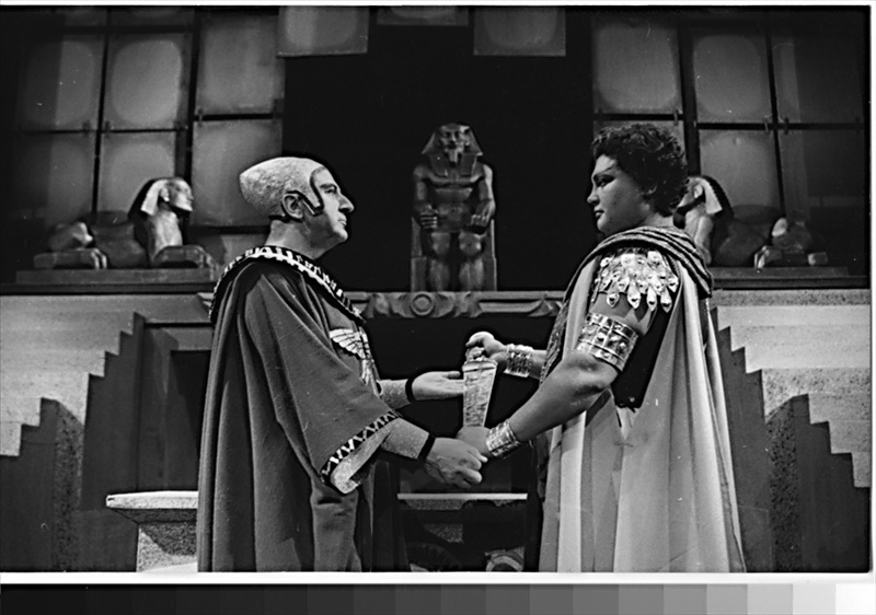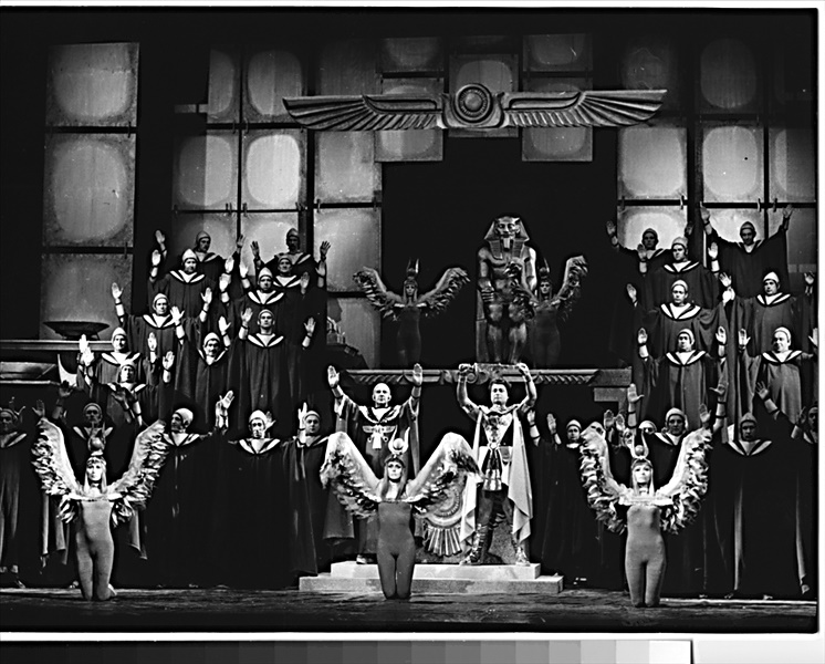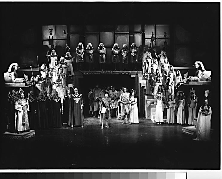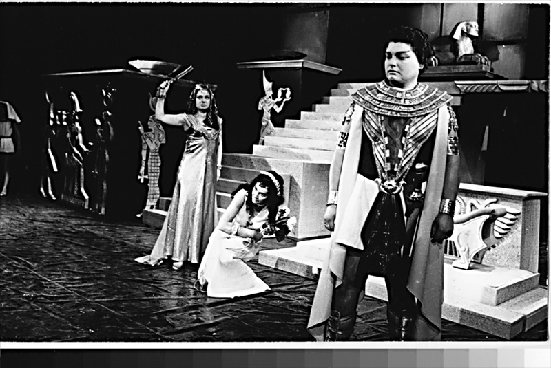 Král:Stanislav Zajíček (alternation); Jan Kyzlink (alternation); Amneris:Amálie Braunová (alternation); Jana Žídková (alternation); Aida:Růžena Jelínková (alternation); Eva Kinclová (alternation); Radames:Václav Eremiáš (alternation); Jan Pleticha (alternation); Leo Marian Vodička (alternation); Ramfis:Ludovít Kovács (alternation); Josef Šulista (alternation); Amonasro:Hynek Maxa (alternation); Pavel Stejskal (alternation); Posel:František Šifta (alternation); Konrád Tuček (alternation); 1. kněžka:Petruše Cimburková (alternation); Vlasta Ployharová (alternation)