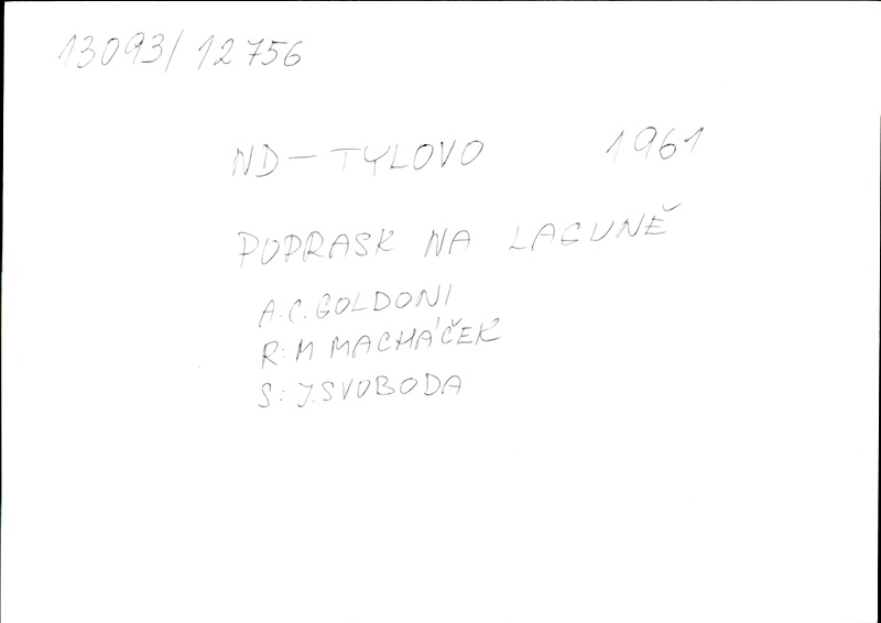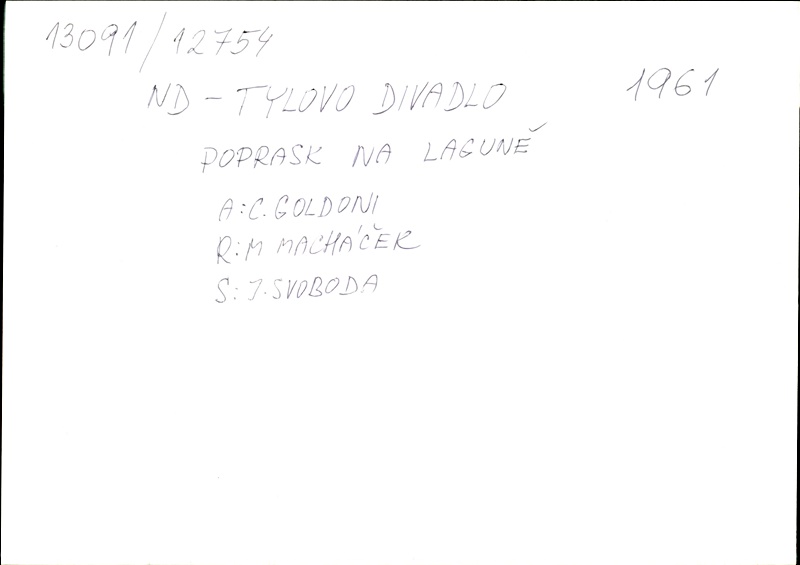 Playwright/Dramatist:Carlo Goldoni; Translation:Jaroslav Pokorný