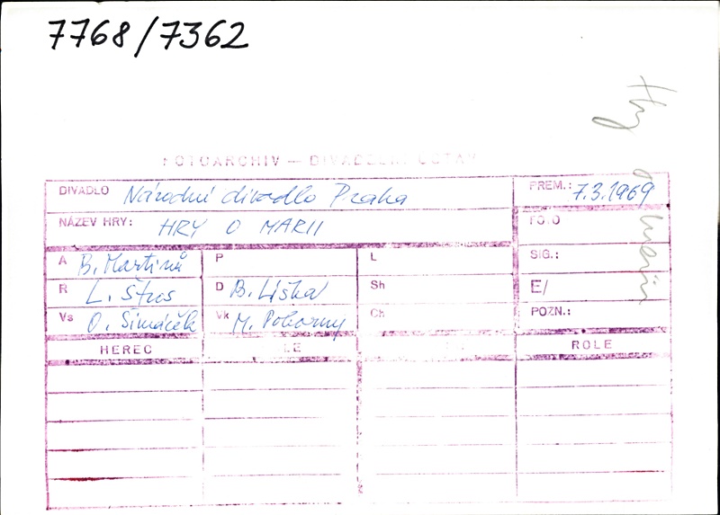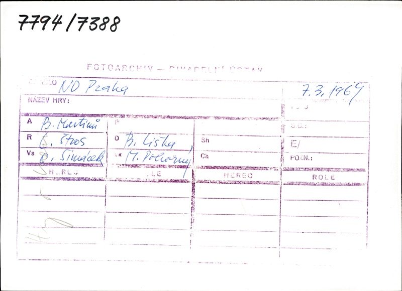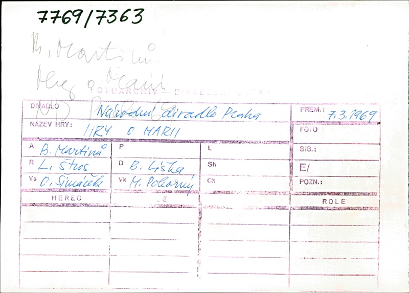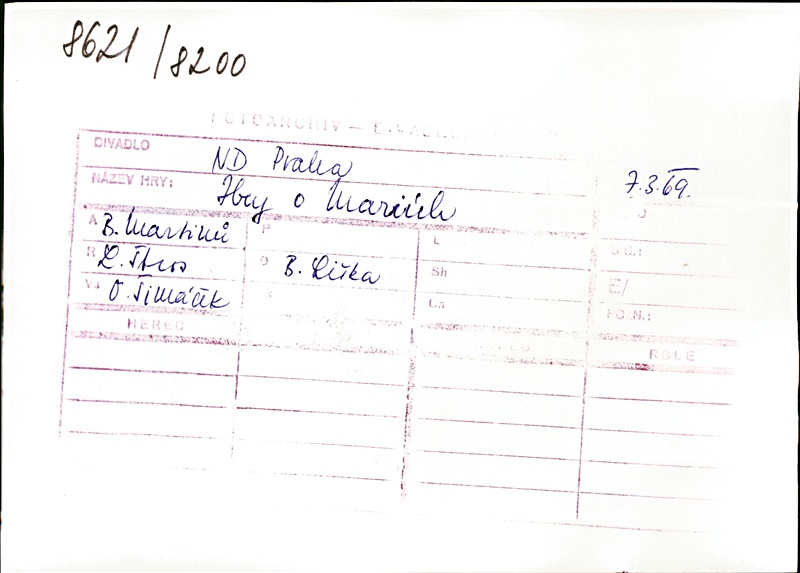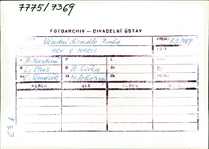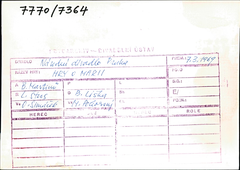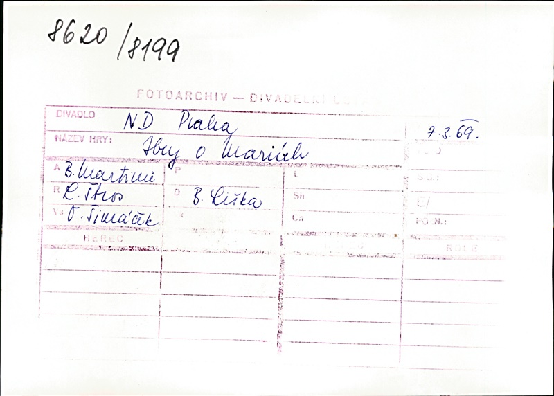 7. 3. 1969 1st premiere (2nd premiereII. premiéra 10. 3. 1969)