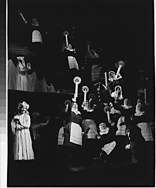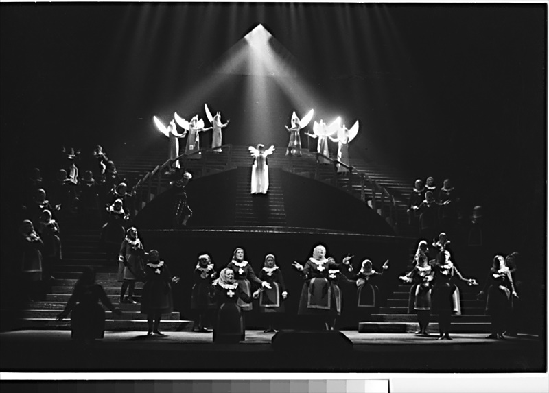 Archanděl Gabriel:Libuše Márová; Panna pošetilá:Eva Hlobilová; Obchodníci s oleji:Jaromír Vavruška; Jiří Joran; 1. hlas:Bohumír Vich; 2. hlas:Milada Musilová; 3. hlas:Štěpánka Štěpánová; 4. hlas:Josef Heriban; Mariken:Libuše Domanínská; Ďábel:Zdeněk Otava; Principál:Milan Karpíšek; Maškaron:Rudolf Vonásek; Bůh Syn:Jindřich Jindrák; Matka Boží:Ivana Mixová; Piják:Vladimír Jedenáctík; Děvče:Marcela Lemariová; Maria:Marcela Machotková; Kovář:Eduard Haken; Kovářova dcera:Libuše Márová; Šenkýř:Jiří Schiller; Sestra Paskalina:Drahomíra Tikalová; Sestra Marta:Jaroslava Procházková; Hlas:Miloslav Doležal; Tančí : Panny moudré:M. Barošová; J. Dolečková; H. Moulíková; Marie Procházková; K. Kosová; Olga Hlavsová; E. Glaserová; Z. Lepková; J. Svobodová; Tančí : Mariken:Hana Tomsová; Tančí : Ďábel:Viktor Malcev; Tančí : Paskalina:Vlasta Šilhanová; Tančí : Matka Boží:J. Svobodová; Tančí : Démon:Pavel Ždichynec; Tančí : Milý:Bohumil Klika