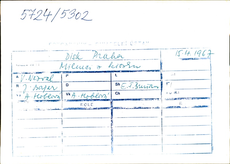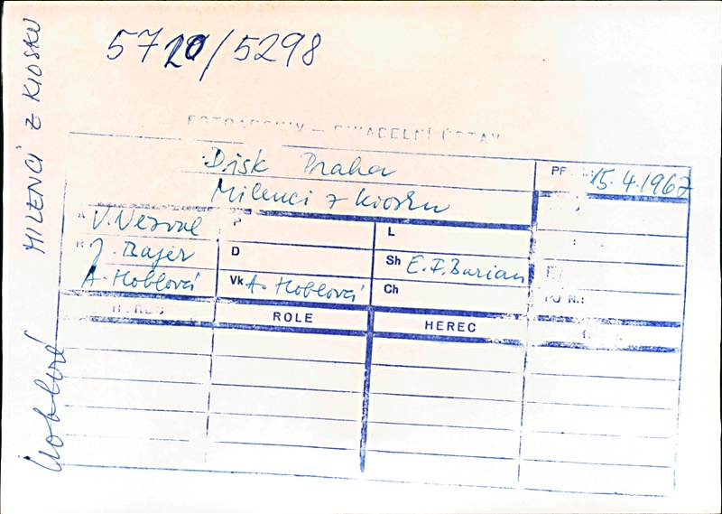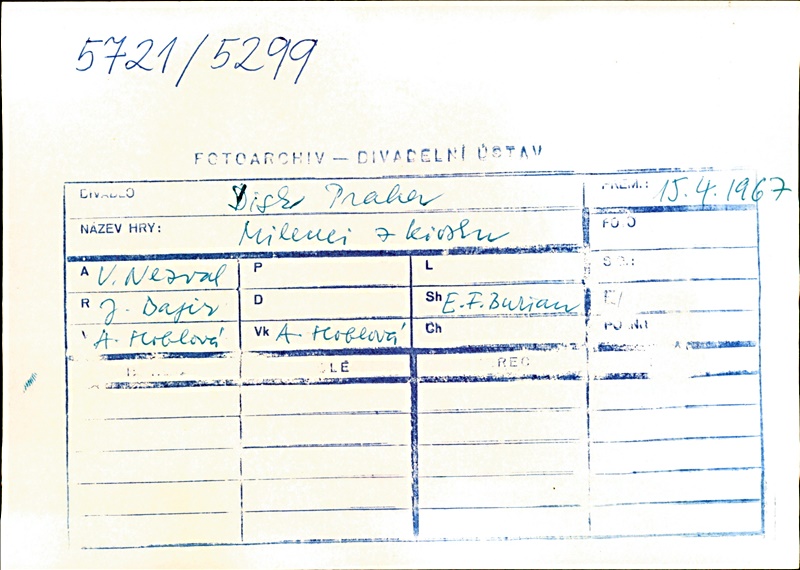 Stage Director:Jan Bajer; Music:Emil František Burian; Set Design:Alena Hoblová; Motion Cooperation:Eva Kröschlová