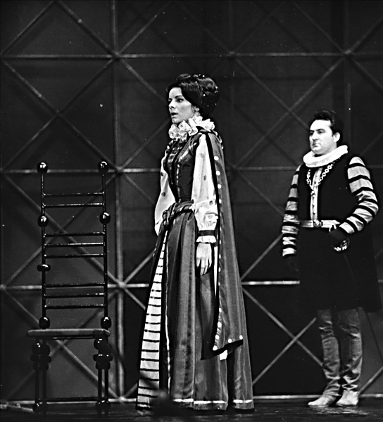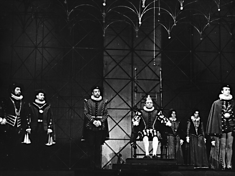 Král Ferrante:Lubor Tokoš; Don Pedro:Miroslav Rataj; Ines de Castro:Jiřina Barášová; Infantka navarrská:Miluše Hradská; Infant navarrský:Josef Hajdučík; Don Christoval:Jan Matýsek; Don Félix:Rudolf Tihelka; Egas Coelho:Miroslav Kahoun; Alvar Goncalves:Kamil Marek; Don Eduardo:Zdeněk Vrablík; Dino del Moro:František Horák (alternace); Oldřich Juráš (alternace); Velkoadmirál:Václav Brtna; Kapitán Batalha:Jiří Kroc; Dvorní dámy: