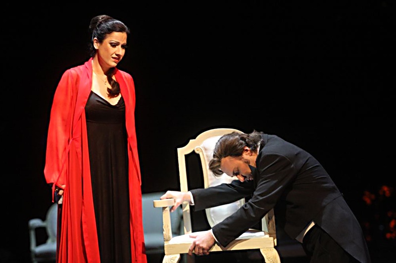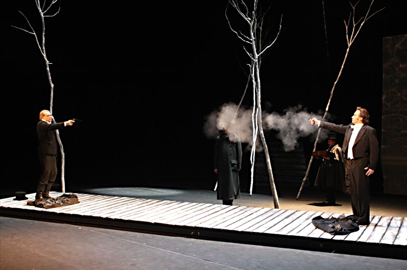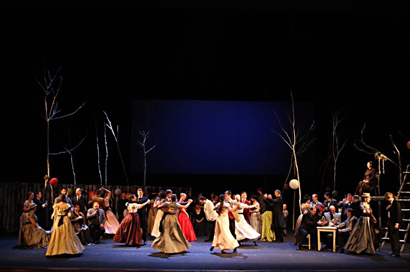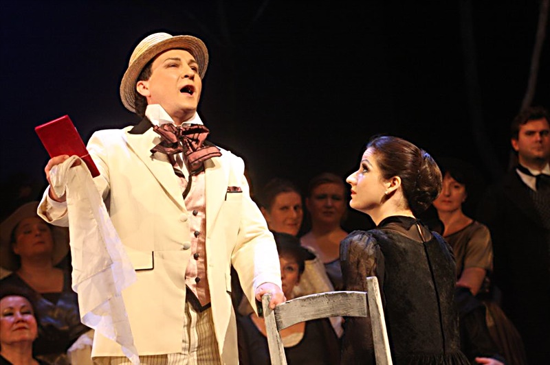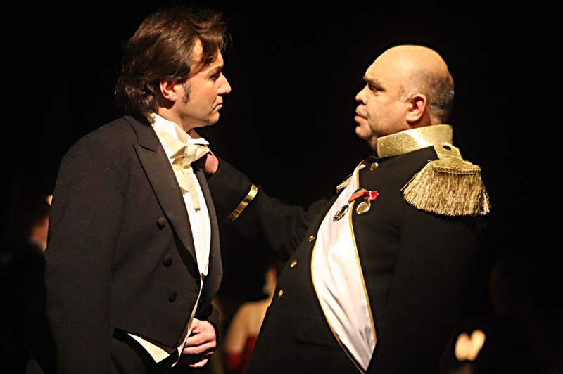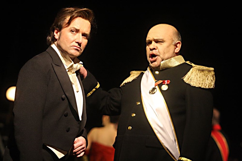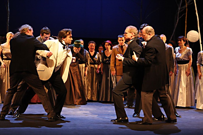 Larina, statkářka:Adriana Hlavsová (alternation); Natalie Romanová (alternation); Tatjana, její dcera:Csilla Boross (alternation); Natalia Ushakova (alternation); Olga, její dcera:Terézia Kružliaková (alternation); Jana Wallingerová (alternation); Filipjevna, chůva:Jana Iskrová (alternation); Jitka Zerhauová (alternation); Eugen Onegin:Vladimír Chmelo (alternation); Roman Janál (alternation); Lenskij:Peter Berger (alternation); Valentin Prolat (alternation); Kníže Gremin:Martin Gurbaľ (alternation); Jevhen Šokalo (alternation); Rotný, Zareckij:Jan Hladík (alternation); Ladislav Mlejnek (alternation); Triquet:Zoltán Korda (alternation); Petr Levíček (alternation); Předzpěvák:Petr Císař (alternation); Ivo Musil (alternation)
