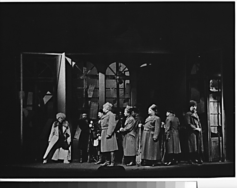 Alexandr P. Nězelasov:Eduard Kohout; Naděžda Semjonovna:Jarmila Kronbauerová; Semjon Semjonyč:Jiří Steimar; Serjoža:Josef Pehr; Varja:Jiřina Petrovická; Ivan A. Obab:Vladimír Leraus; Nikita J. Veršinin:Jaroslav Průcha; Nastasjuška:Alena Jančaříková; Míša:Václav Švorc; Pentěflij Znobov:Vítězslav Vejražka; Sin-bin-u:Emil Bolek; Ilja G. Peklevanov:Otomar Krejča; Máša:Marie Burešová; Semjonov:Miroslav Doležal; Sergěj P. Petrov:Emil Konečný; Vaska Okorok:Soběslav Sejk; Stařec:Jaroslav Vojta; Přednosta stanice:František Kreuzmann st.; Nikiforov:Vladimír Řepa; Japonec:Miroslav Horníček; Zajatý americký voják:Josef Mixa; Filonov:František Filipovský; Mladý rybář:Václav Hudeček; Voják pobřežní hlídky:Bohuš Hradil; Madame Vorobjevová:Marie Vášová; Učitel:Miroslav Horníček; Stařeček:Miloš Nesvadba; Stařenka:Lída Sudová; Samotářka:Eliška Poznerová; Voják z obrněného vlaku:Teodor Strejcius; Zajatý mužík:František Roland; Stařešina:Zdeněk Šavrda; Žena v růžovém šátku:Luba Skořepová; Mužík přivádějící Američana:František Velebný; Partyzán:Jaroslav Mareš; Mužík s obvazem:Bohumil Bezouška; Mladý mužík:Karel Pech; 1. dělostřelec:Václav Hudeček; 2. dělostřelec:Josef Melč; 1. dělník v železn.dílnách:Karel Pech; Mladý dělník:Miloš Nesvadba; Starý dělník:Bohuš Hradil; Americký voják:Josef Melč; Pomocník komisaře:Bohumil Bezouška; Mužík z podljisevského újezdu:Viktor Roubal