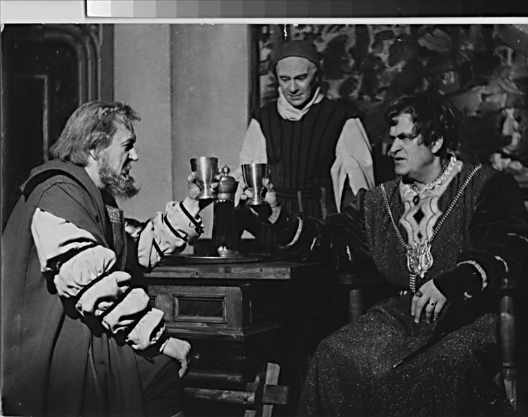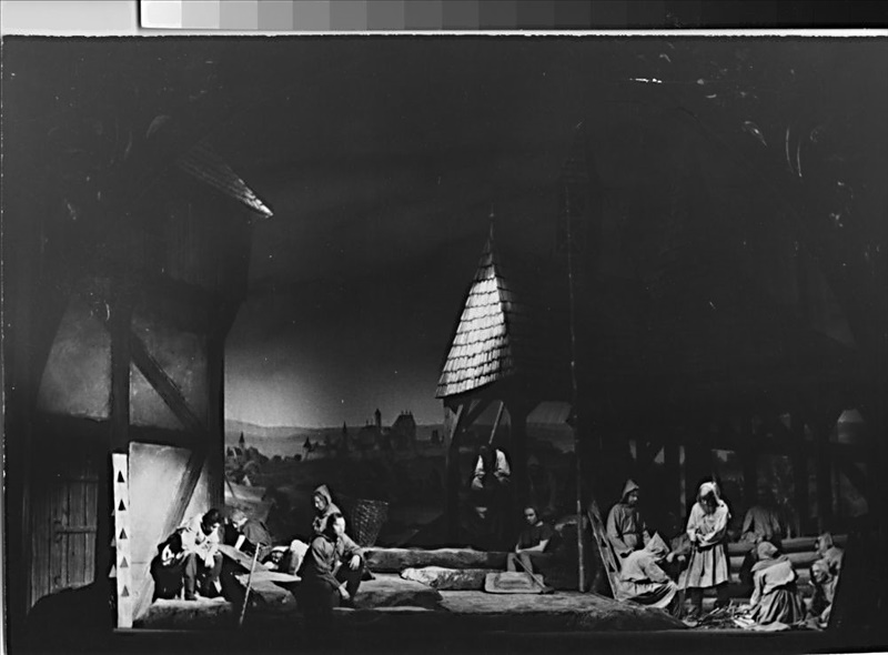 Beneš z Vaitmile:Bedřich Karen; Hynek:Miroslav Doležal; Oněk Kamenický z Topic:Jaroslav Průcha; Jaroš z Poděhuz:Karel Pech; Rekordat:Eduard Kohout (alternation); Ladislav Pešek (alternation); Prokop Kroupa:Bohuš Machník; Opat:Jaroslav Vojta; Anežka:Jiřina Petrovická; Vít:Josef Mixa; Šimon:Vladimír Leraus; Holý:František Filipovský; Pruša:Bohuš Hradil (externista); Lana:František Velebný; Kužel:Miloš Nesvadba; Černý:Bohumír Brunclík (externista); Havel:Jaroslav Mareš; Anselmus:Jindřich Fišer (externista); Kostka:Zdeněk Šavrda; Dorota:Marie Ježková; Božena:Milada Smolíková; Bohuš:Jiří Budínský (studující); Horní biřic, Drábové, Oděnci:; Zbrojnoši, Hutníci, Kovkopové:; Hlínaři, Čeleď, Ženy: