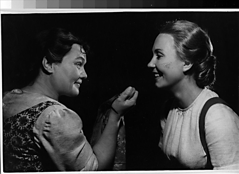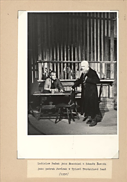 Zlatohlav:Vítězslav Vejražka; Matinoha:Josef Pehr; Černobejl:Miroslav Horníček (alternation); Václav Švorc (alternation); Baron Hrdopyška:Bedřich Karen; Pan Vydřiduška:Karel Pech; Barbora Jahelková:Marie Burešová (alternation); Milada Smolíková (alternation); Terezka:Eva Klenová; Madlenka:Jarmila Krulišová (alternation); Marie Glázrová (alternation); Ančička:Jiřina Steimarová (alternation); Lída Plachá (alternation); Kuba:Jan Pivec; Řešeto:Teodor Strejcius; Běhounek:Miloš Hájek (externista, alternation); Jaroslav Synák (externista, alternation); Jan Pěnkava:Karel Höger; Vojtěch Nožejček:Bohuš Záhorský; Starý Ezechiel:Ladislav Pešek; Loukota:Jaroslav Průcha; Kohoutek:Miloš Nesvadba; Javůrek:Zdeněk Šavrda; Vašek:Michael Junášek (dětská role, alternation); Václav Ondrák (dětská role, alternation); Vára:Bohumír Brunclík (externista, alternation); Jaroslav Synák (alternation)
