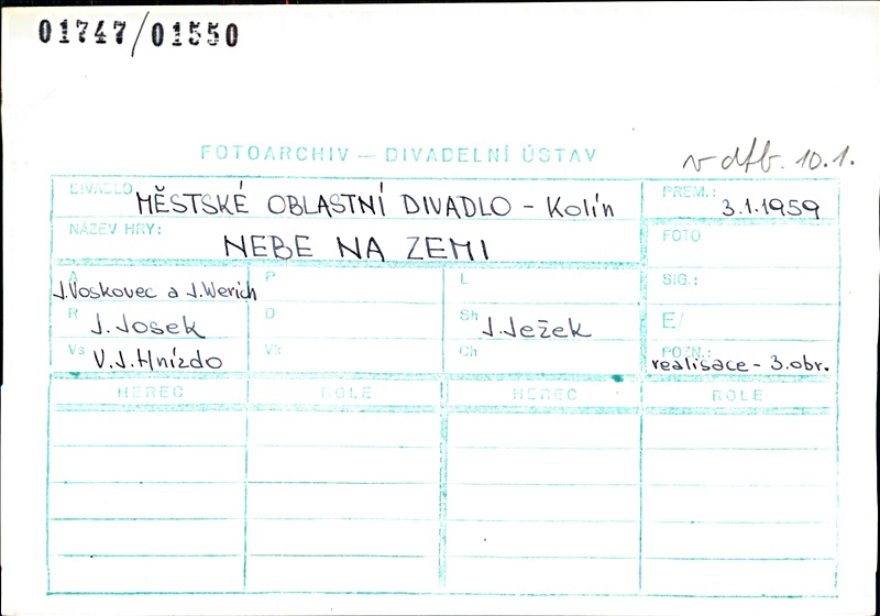 Stage Director:Jiří Josek; Set Design:Vladimír Jan Hnízdo; Choregrapher:Antonín Hodek (j.h.)