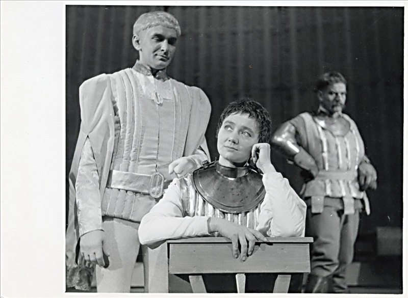 Jana:Milada Procházková (alternation); Jana Janovská (alternation); Robert de Beaudricourt:Stanislav Jareš; Správce:Zdeněk Jelínek; Bertrand de Poulengey:Walter Steiner; Arcibiskup remešský:Rudolf Šimara; Pan de la Trémouille:Bedřich Bittl; Páže Dauphinovo:Naďa Chmelařová; Gill de Rais:Rudolf Máhrla; Kapitán la Hire:Antonín Strnad; Dauphin:Miroslav Švejda; Vévodkyně de la Trémouille:Jarmila Rajská; Dunois:Svatopluk Matyáš; Páže Dunoisovo:Milada Procházková (alternation); Jana Jankovská (alternation); Richard de Beauchamp:Miloš Preininger; Kaplan de Stogumber:Václav Jeřábek; Cauchon:Maxmilián Hornyš; Warwickovo páže:Josef Novák; Inkvizitor:Radomil Kolesa; D´Estivet:Miroslav Malkovský; De Courcelles:František Bahník; Bratr Ladvenu:Stanislav Malý; Kat:Oldřich Balcar; Nestor inkvizice:Bedřich Stein (j.h.); Anglický voják:Jiří Chalupa; Pán:Josef Srba