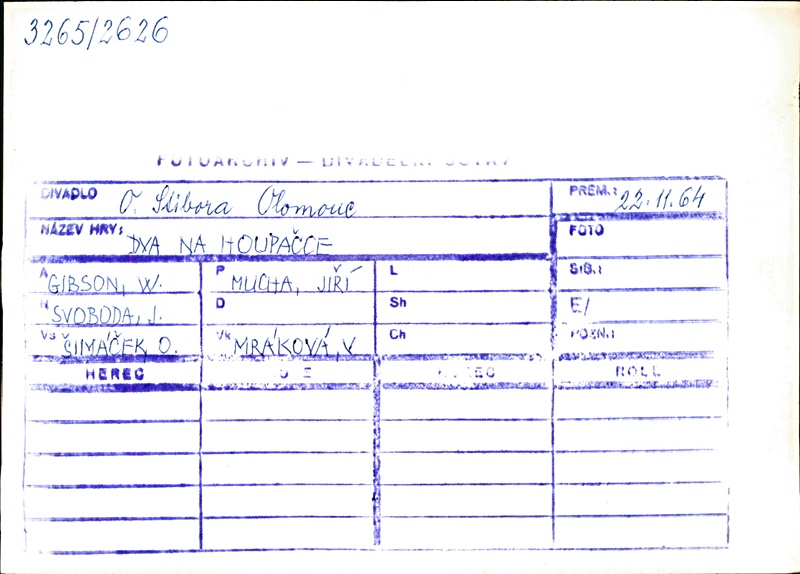 režisér:Jiří Svoboda; scénický výtvarník:Oldřich Šimáček; kostýmní výtvarnice:Věra Mráková