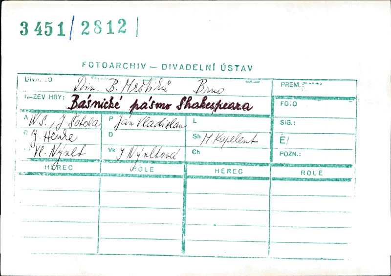 Literární kompozice ze sonetů W. Shakespeara a veršů Jiřího Šotoly Překlad Shakespearových sonetů: Jan Vladislav |