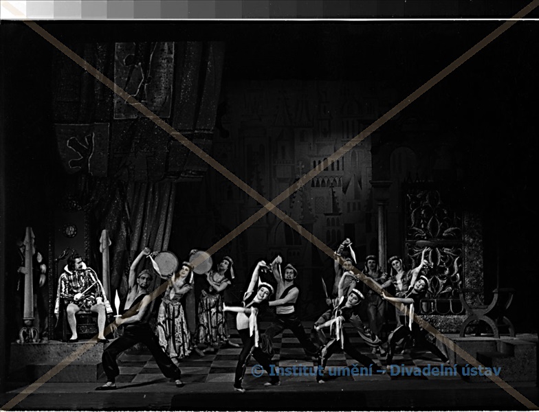 Fernando Mendoza:Miloslav Milštain; Mucho:Jiří Přichystal; Sú:Alena Bílková; Perez:Miloš Slavík; Filip IV.:Karel Kosina; Markéta Terezie:Marie Tomšů (alternation); Luis:Jindřich Loukota; Isabella:Mary Bártů (alternation); Vilma Nováčková (alternation); Králův šašek Libero:Arnošt Škoda; Ceremoniář:Zdeněk Skopal; Prelát:Alfred Gutter; Jorge:Alois Kocman; José:Josef Macháček; Zrzek:Otakar Staněk; Miguel:Bohumil Adamec; Rodrigo:Antonín Špaček; Tříprsťák:Vladimír Plchot