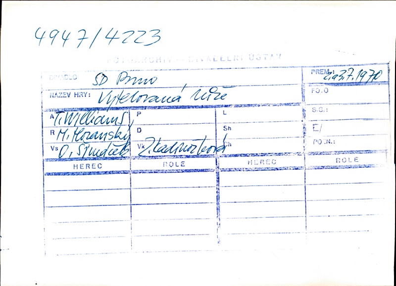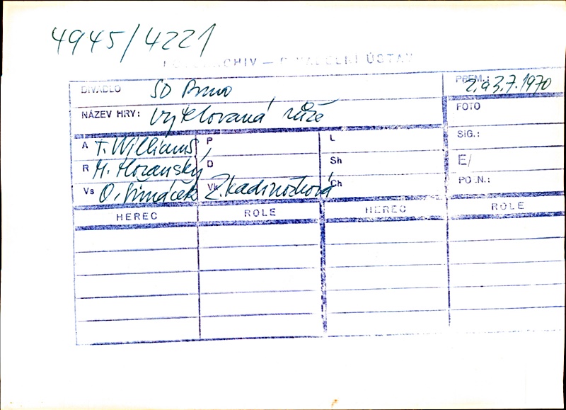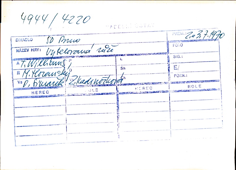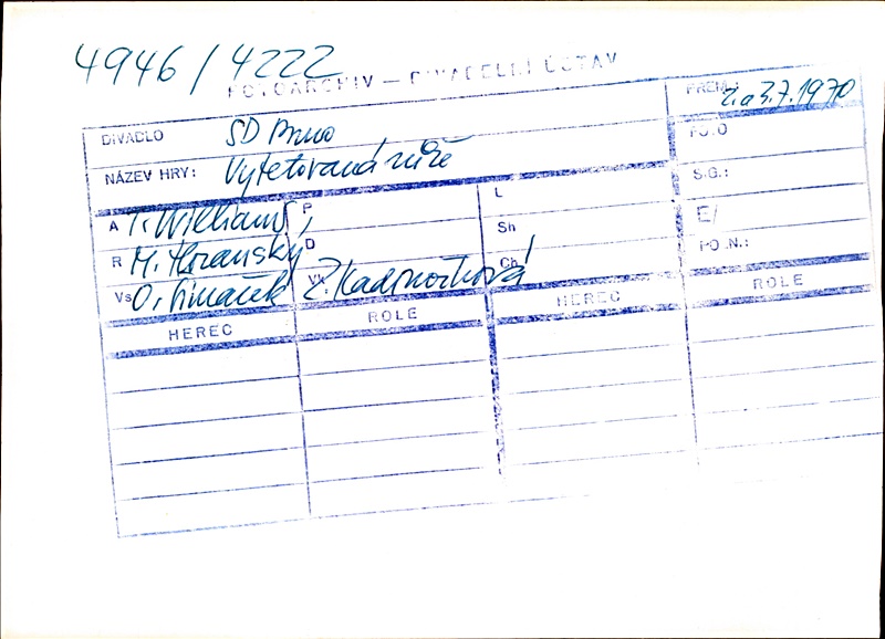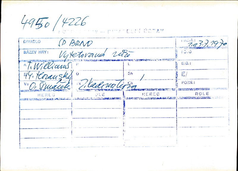 Playwright/Dramatist:Tennessee Williams; Translation:Hana Budínová