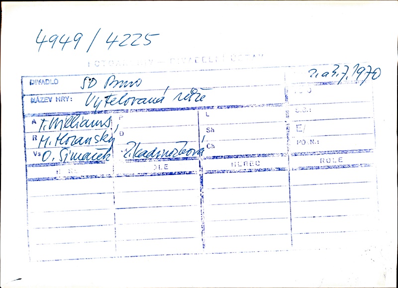 2. 7. 1970 1st premiere (2nd premiereII. premiéra 3. 7. 1970)