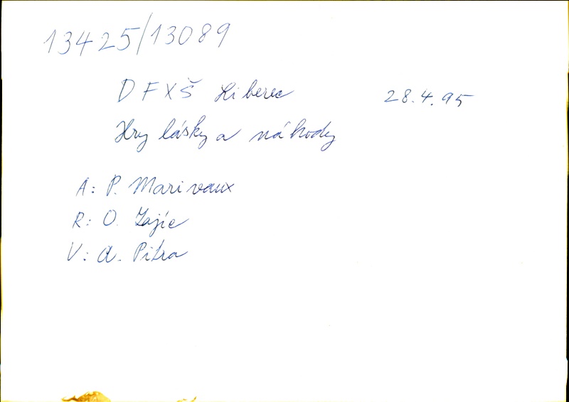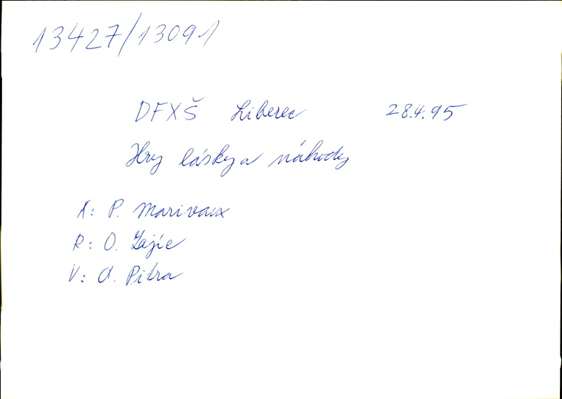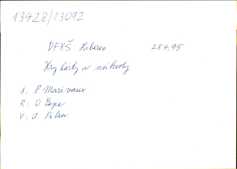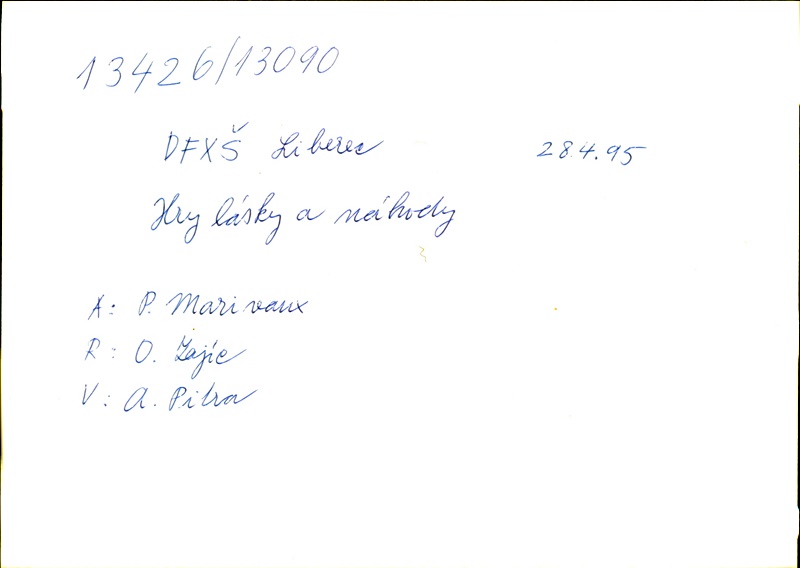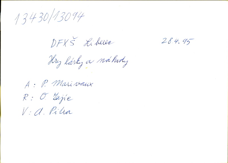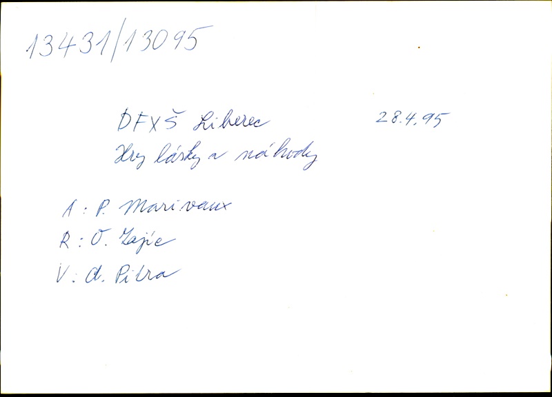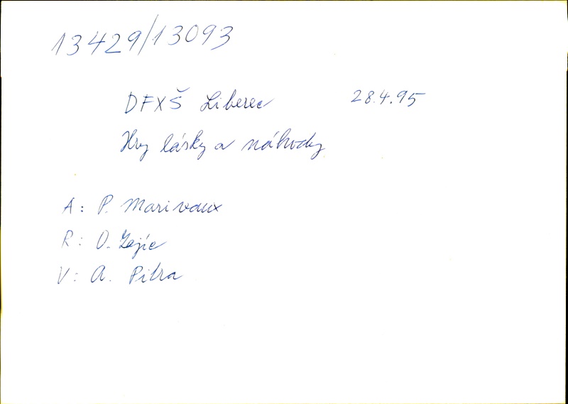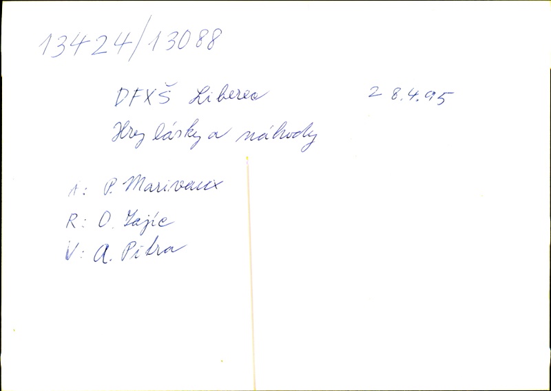 Playwright/Dramatist:Pierre de Marivaux; Translation:Jan O. Fischer