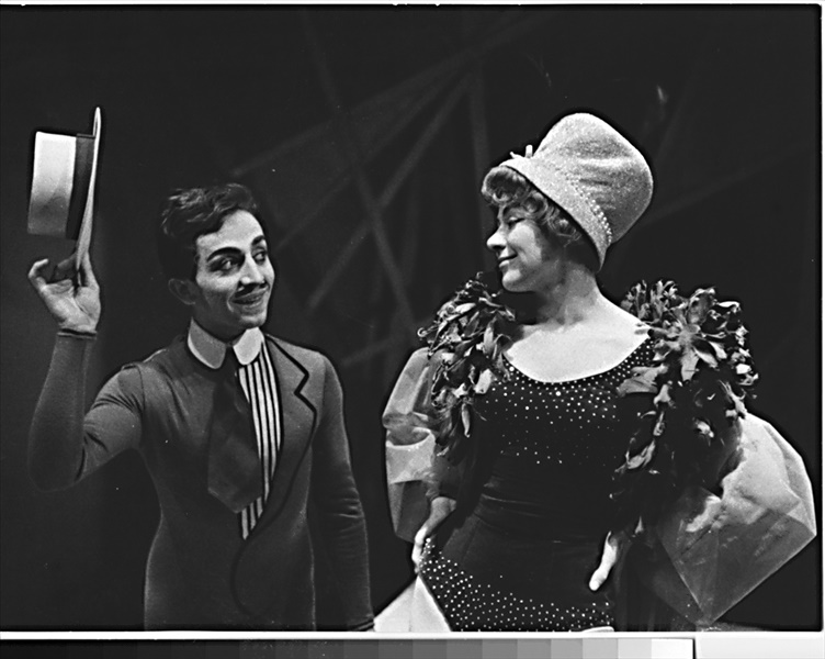 Petruška:Karel Jurčík (alternation); Jiří Čejka (alternation); Jiří Duží (alternation); Balerina:Hana Šarounová (alternation); Věra Hradilová (alternation); Jana Lipovská (alternation); Mouřenín:Bohuslav Pašek (alternation); Rudolf Brom (alternation); Ivan Mičola (alternation); Šarlatán:Ladislav Mašek (alternation); Albert Janíček (alternation); Josef Radil (alternation); Pouliční tanečnice:Julie Jastřembská (alternation); Drahomíra Svobodová (alternation); Jiné tanečnice:Věra Hradilová (alternation); Marcela Martiníková (alternation); Hana Šarounová (alternation); Cikánky:Jarmila Hylasová (alternation); Elen Colombová (alternation); Důstojník:Bohuslav Pašek (alternation); Ladislav Mašek (alternation); Rudolf Brom (alternation); Tři dívky:Zdena Nováková; Tři dívky:Dana Dobrá; Tři dívky:Marie Steinová; Principál:Karel Raška; Komedianti:Jiří Duží; Komedianti:Jaroslav Čejka; Komedianti:Karel Jurčík; Komedianti:Zdena Hrtoňová; Komedianti:Hana Ledečová; Záletná paní:Ljuba Jansová (alternation); Jana Lipovská (alternation); Starý kočí:Leo Krawiarz