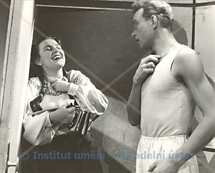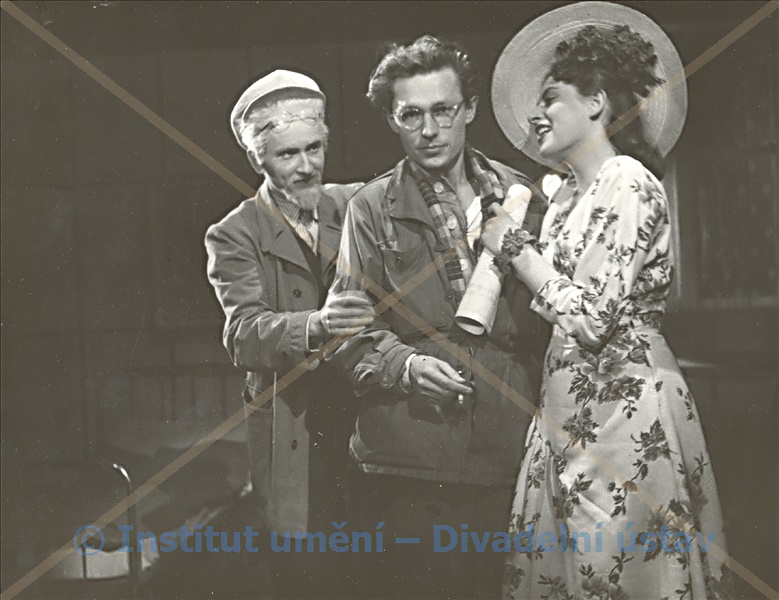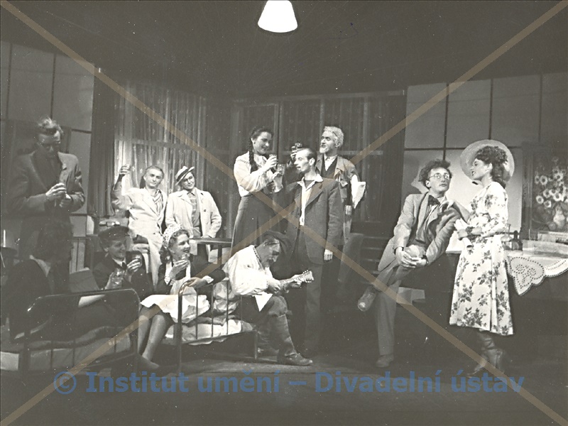 Ďjužikov:Josef Langmiler; Ivan Ivanovič Kirpičnikov:Jindřich Rychtařík; Dědeček Baburin:Václav Kyzlink; Andrej N.Griško:Petr Mareš; Duňja Baburina:Božena Böhmová; Ljuba Popova:Hana Květoňová; J.M.Kirpičnikova:Zdenka Štěpánová; Zpěvačka:Ljuba Benešová; Pokojská ve třináctém poschodí:Marie Mikotová; Matka Ljuby Popové:Lola Skrbková; A.Misjan:K. Matura; Doprovazeč:Jiří Adamíra; Člověk v kostkovaném kabátě:Jaromír Staněk; Chlapec:Rudolf Kyselý; Muž své ženy:Jindřich Kocian; Člověk s bradkou:Rudolf Kyselý; Uzbek:Jiří Adamíra; Námořník:K. Matura; Miliconér:Josef Koza