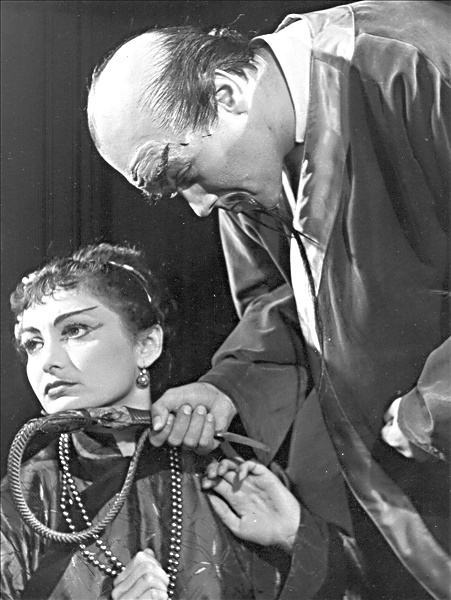 Liu Jen-ming:Stanislav Ebens; Broskvový květ:Michaela Kubisová (alternation); Vlasta Kalendová (alternation); Dále hrají:Stanislav Ebens; Li Jen-ši:Bohuslav Pastorek; Čang Žui-čing:Leopold Běhan; Marta Záhorová