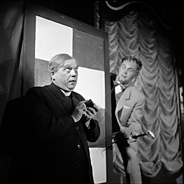 Farář:Rudolf Kyselý; Jeho hospodyně:Madrána Slámová; Posluha:Jaroslav Pazderka; Satan:Josef Šulc; Malíř Marius:Miroslav Valenta; Redaktor Pressmenn:Miro Chorvát; Jeho žena Elsa:Marie Chocholatá; Kitty:Helena Bendová; Slečna Hermína:Gabriela Preissová; Generál:Josef Lébr; Anděl:Xenie Chytrá; Biskup:Josef Nesnídal; Šéfredaktor:Jiří Bukvaj; Starosta:Stanislav Lužický; Jeho žena Isolda:Vlasta Horová; Děvče:Xenie Chytrá