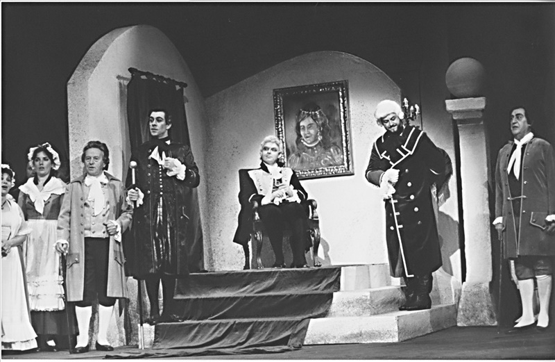Hrabě Vilém z Harasova:Milan Bürger (alternation); Rafael Kubita (alternation); Bohuš z Harasova:Zdeněk Hlávka (alternation); Dalibor Tolaš (alternation); Adolf z Harasova:Erik Bezdíček (alternation); Zdeněk Hlávka (alternation); Julie:Ivanka Malinová (alternation); Lilka Ročáková (alternation); Filip:Tomáš Bartůněk (alternation); Karel Křemenák (alternation); Jiří:Zbyněk Brabec (alternation); Petr Strnad (alternation); Benda:Alfréd Hampel (j.h.); Miloš Ježil (alternation); Terinka:Marcela Hrdinová (alternation); Karolina Hromádková (alternation); Lenka Martanová (alternation); Lotinka:Eva Klečková (alternation); Jaroslava Zamrazilová (alternation)