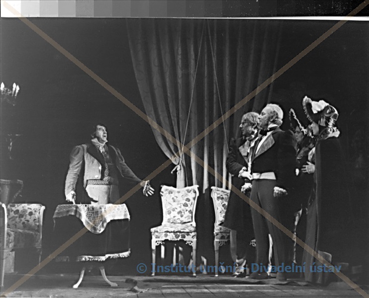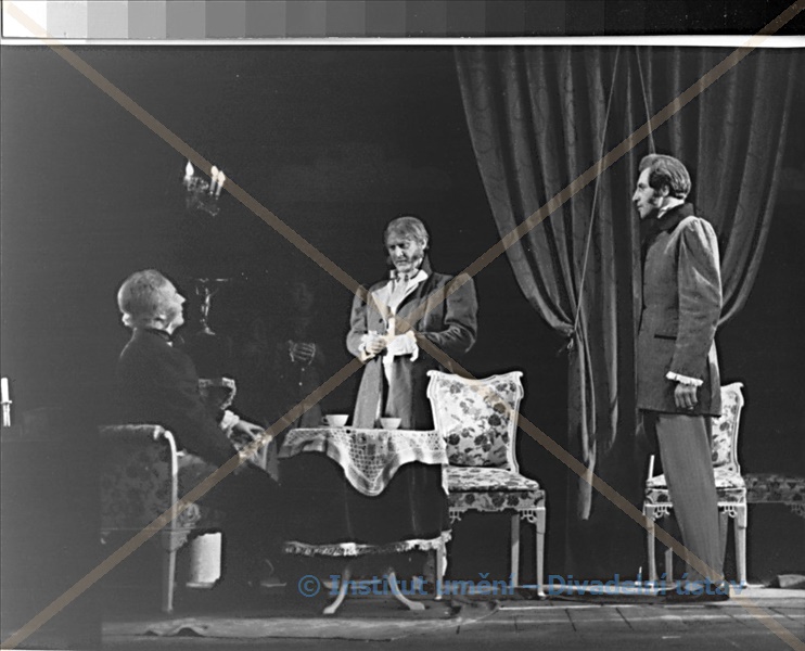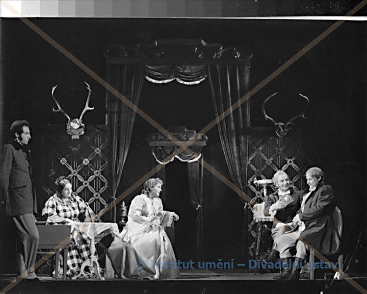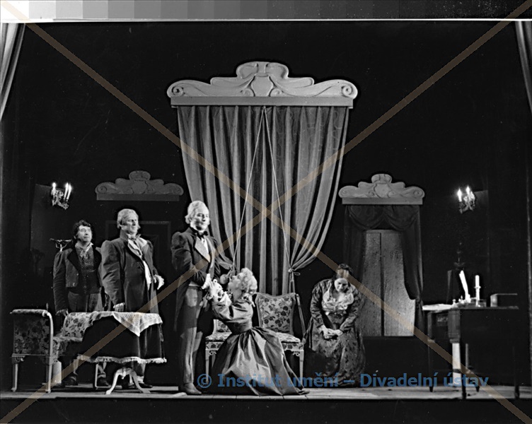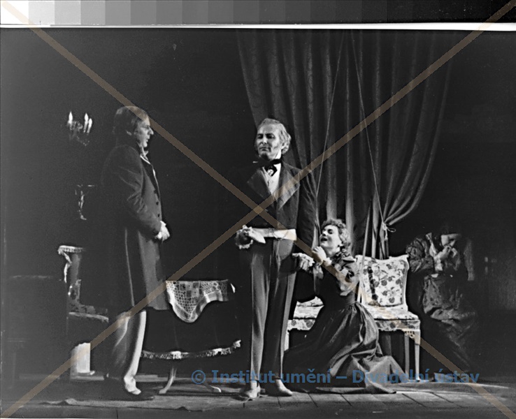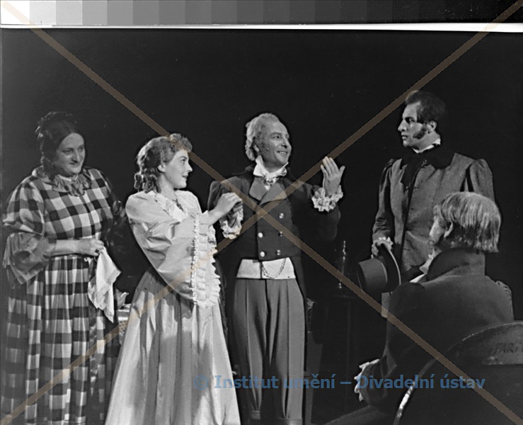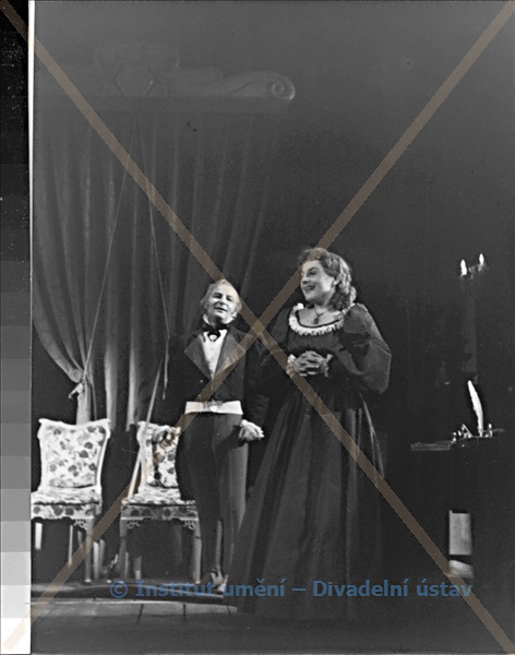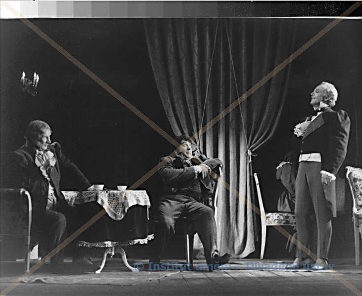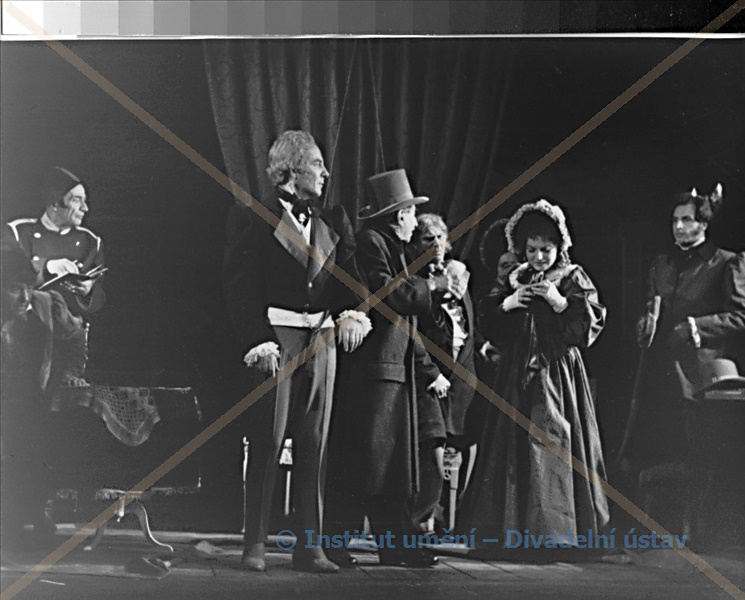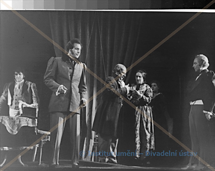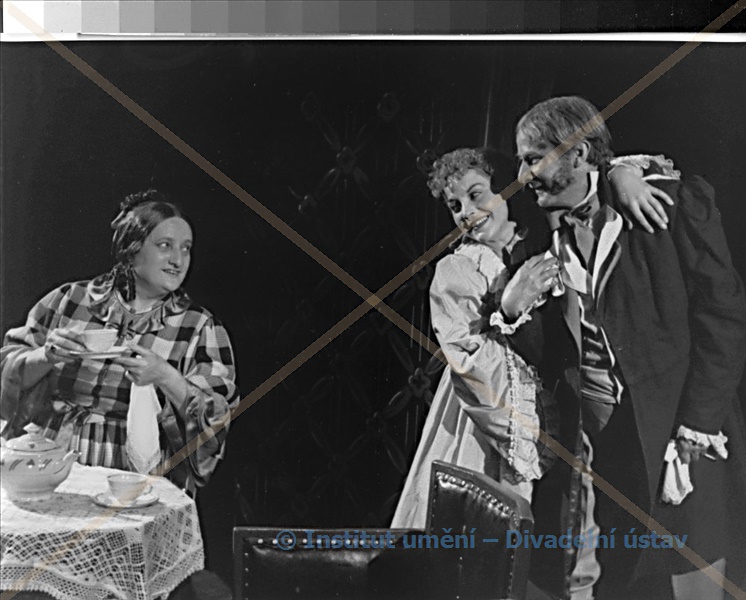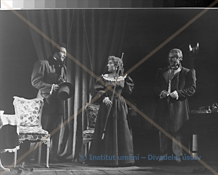 Rasplujev:Miloslav Svoboda; Muromskij:Jaroslav Pazderka; Lidočka:Marie Vacková; Atujeva:Karla Přibylová; Nělkin:Josef Pánek; Krečinskij:Vladimír Jirousek; Bek:Ferdinand Jarkovský; Fedor:František Nechyba; Tiška:Bohumil Diviš; Policejní úředník:Theodor Polanský