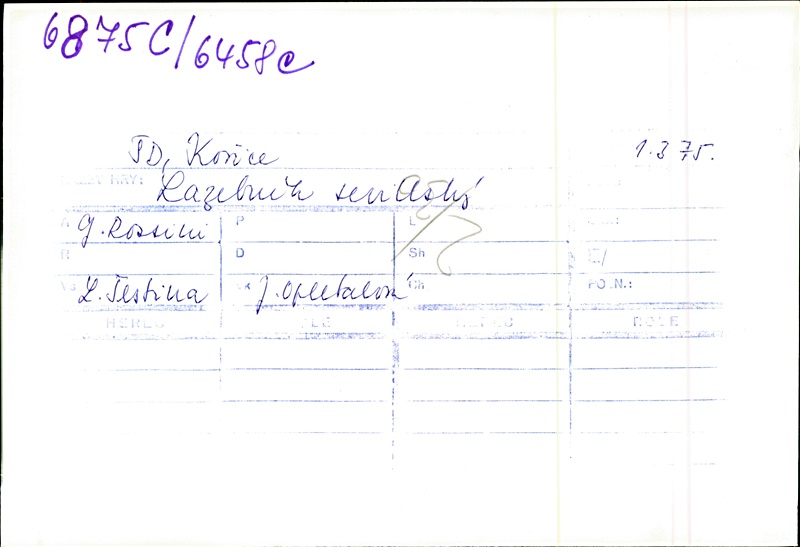 Set Designer:Ladislav Šestina; Costume Designer:Jarmila Opletalová