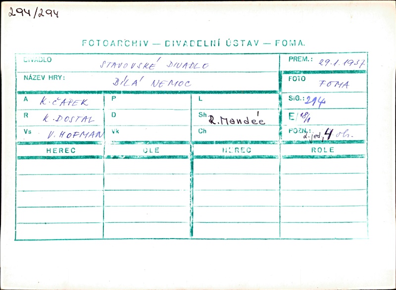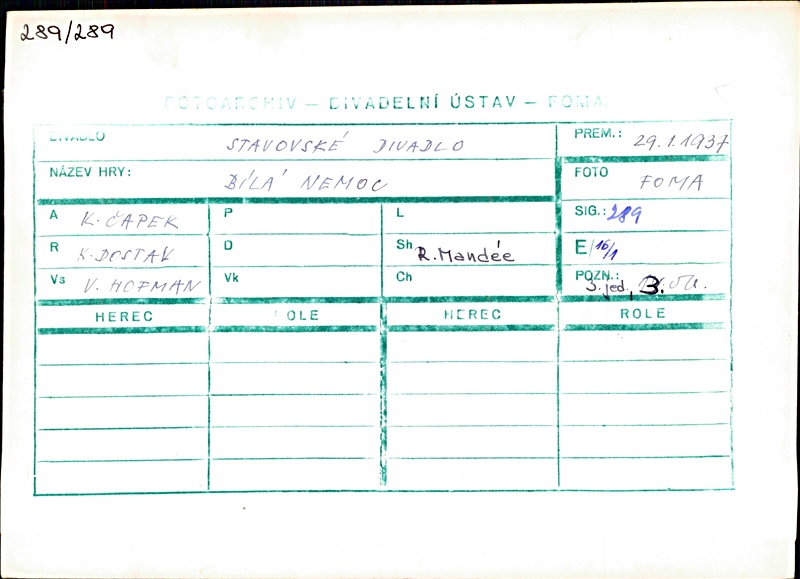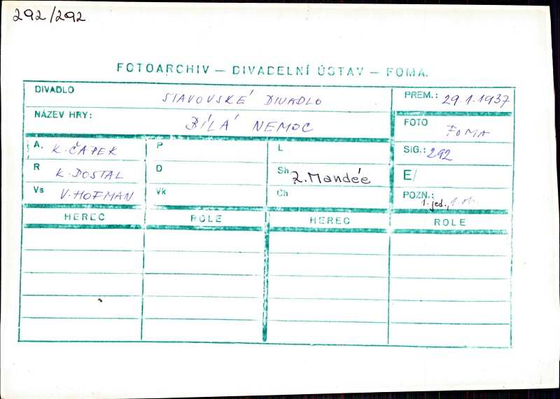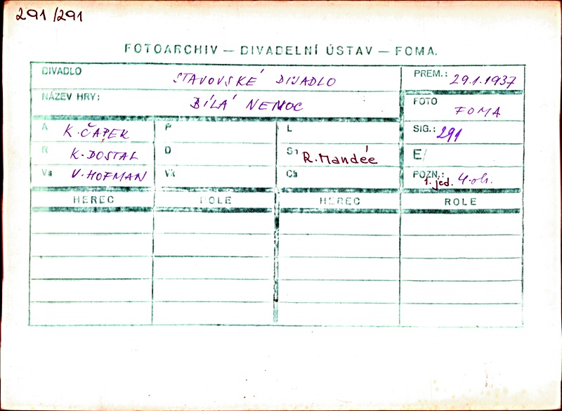 Stage Director:Karel Dostal; Set Designer:Vlastislav Hofman