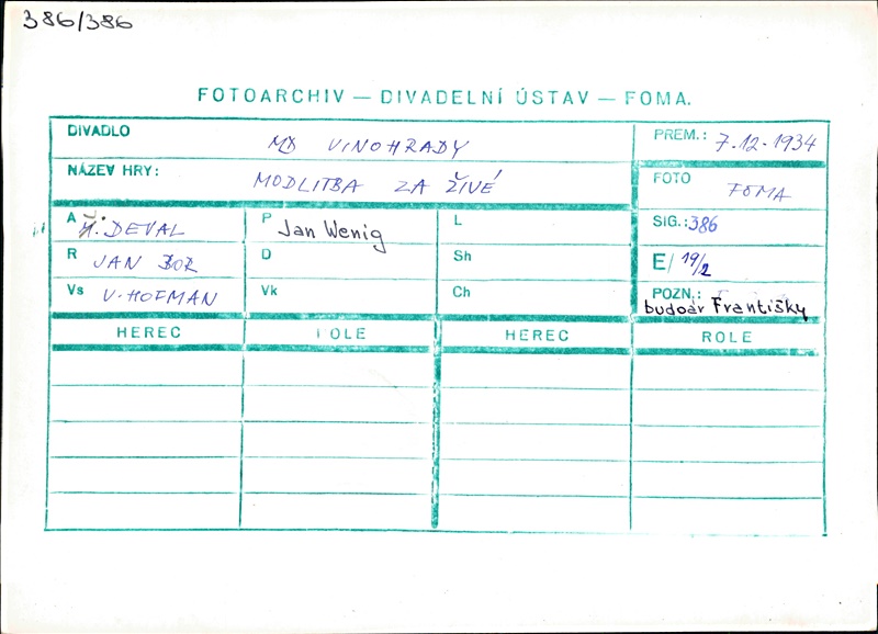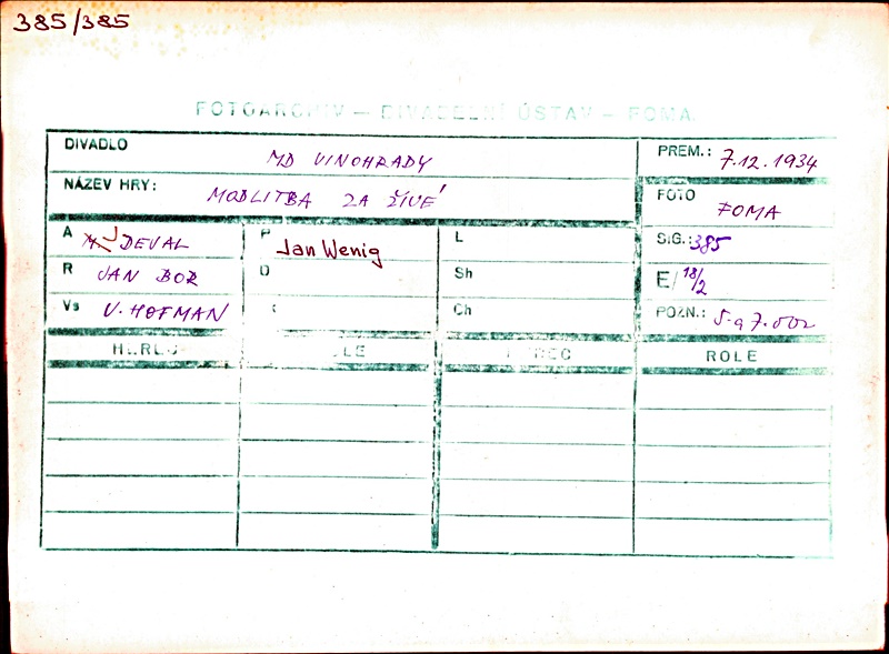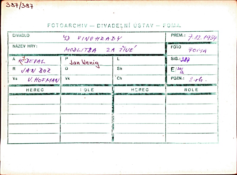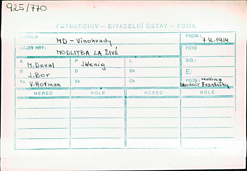 režisér:Jan Bor; scénický výtvarník:Vlastislav Hofman