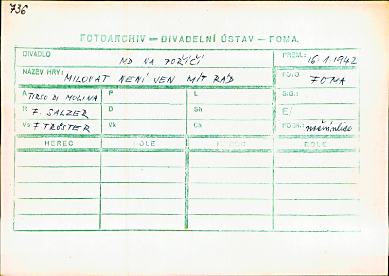 Pro scénografickou databázi naplněn autor výpravy Fr. Tröster, v programu scéna Josef Brož, kostýmy Adolf Wenig.