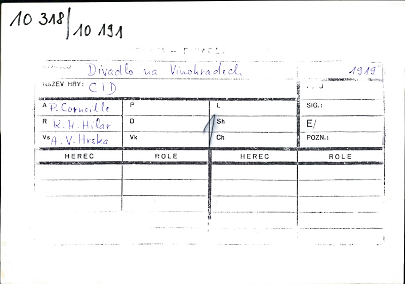 režisér:Karel Hugo Hilar; scénický výtvarník:Alexandr Vlad. Hrska