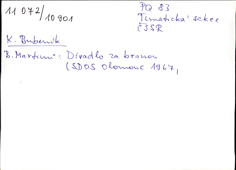 Naplněno pro scénografickou sbírku, proto neúplné. Datum premiéry je pouze orientační, pravděpodobně se uskutečnila v roce 1967.