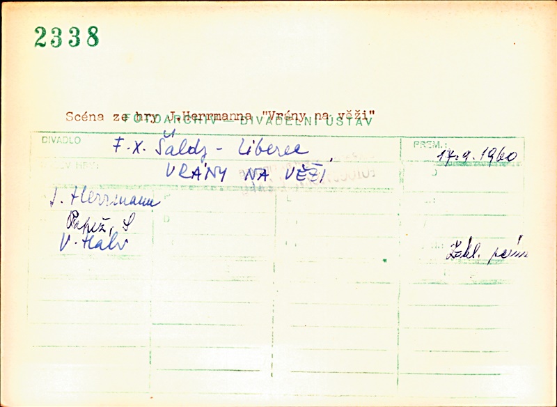 Stage Director:Svatopluk Papež; Set Designer:Vratislav Habr; Costume Designer:Jan Vitík; Costume Designer:Anna Makovcová