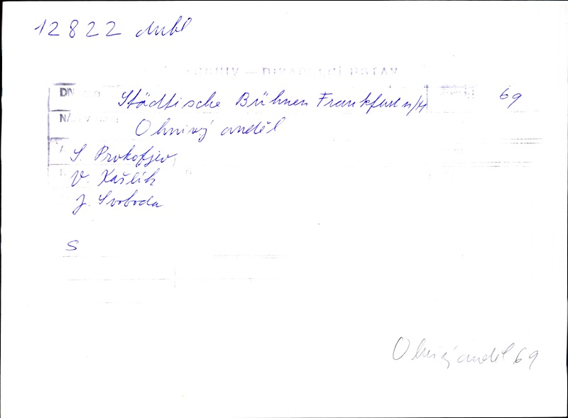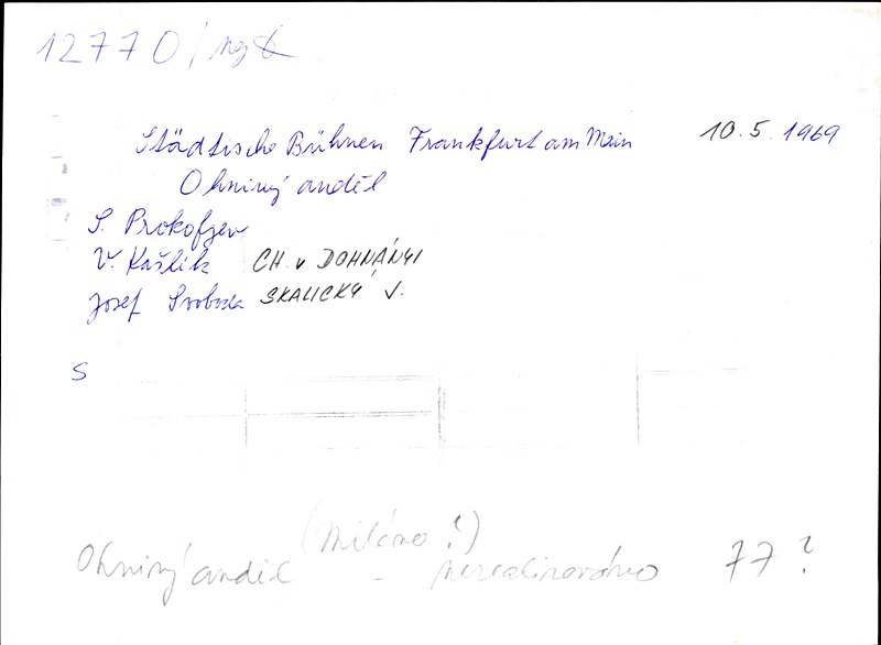 Naplněno pro scénografickou sbírku, proto neúplné.