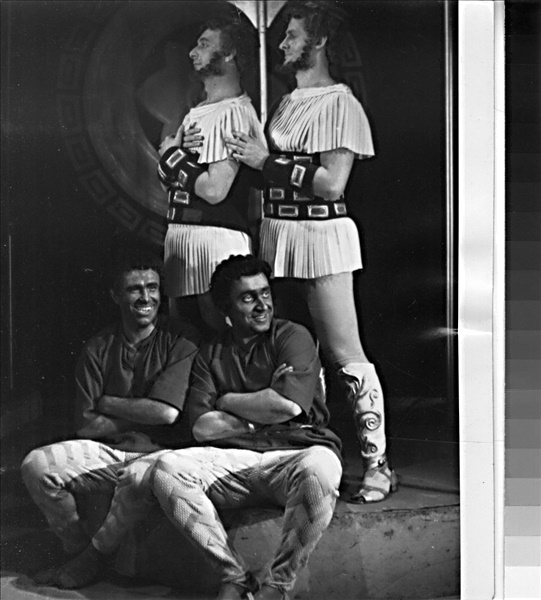 Antifolus syrakuský:Jan Soumar; Antifolus Efeský:Pavel Hlavica; Dromio Efeský:Jan Malík; Dromio syrakuský:Jaroslav Slováček; Adriana:Marcela Machotková; Luciana:Marie Bubeníčková; Angelo:Arnošt Klíma; Vévoda Efeský:Jan Kyzlink; Hlasatel:Vladimír Šorsák; Doktor:Jindřich Čapek; Lodník:Josef Vojtíšek; Strážník:Jiří Hrubeš