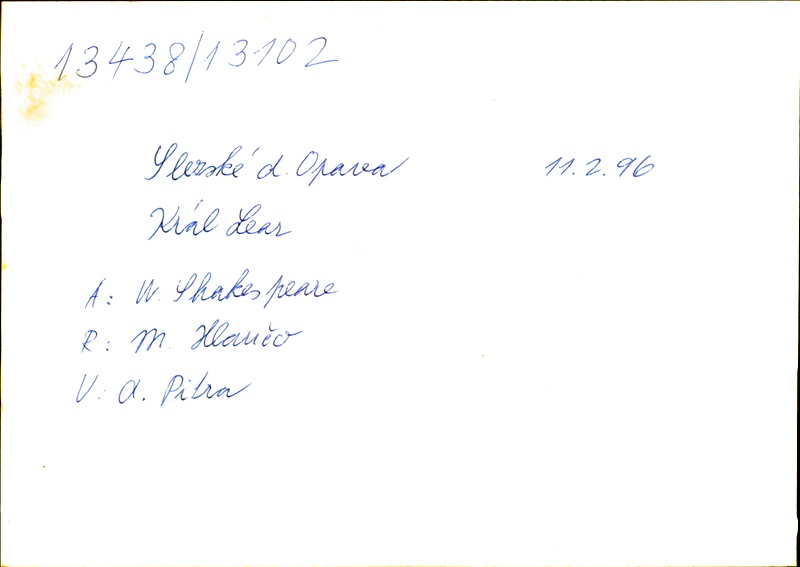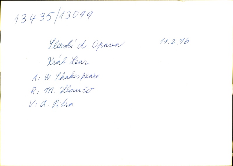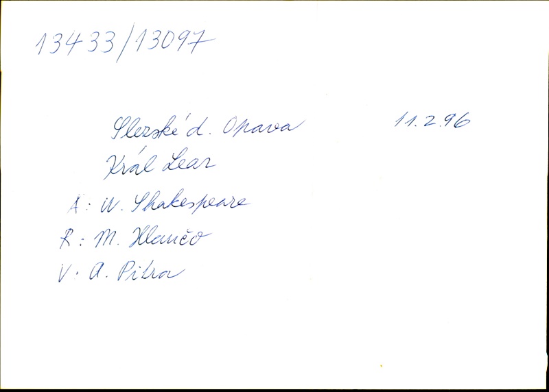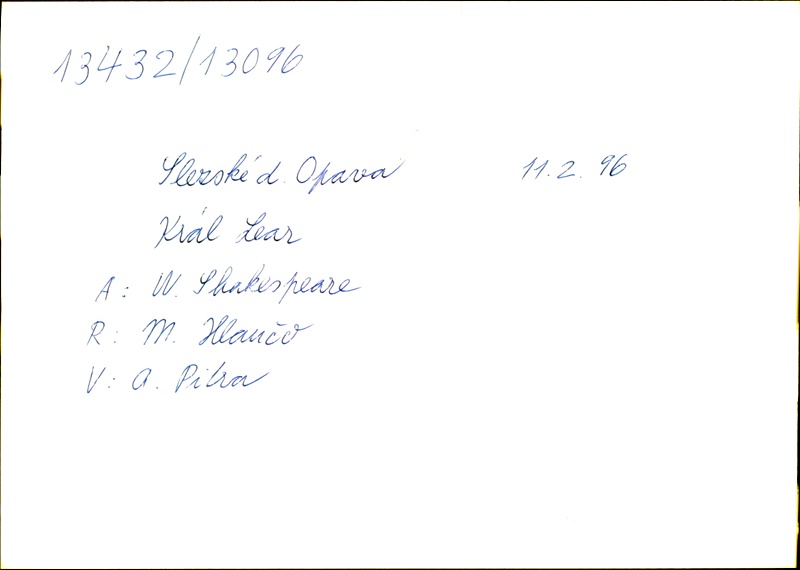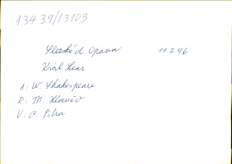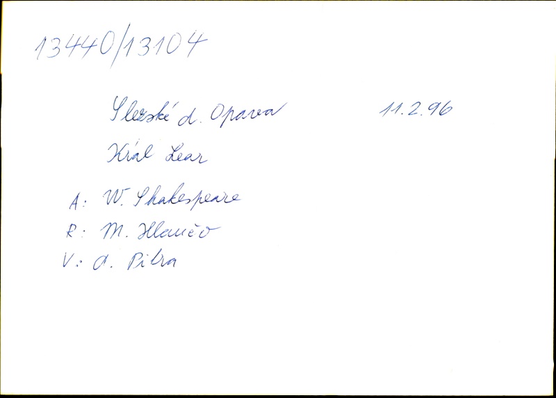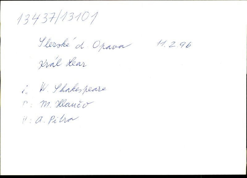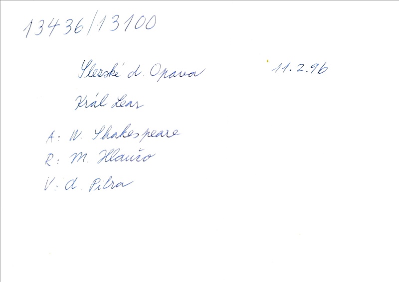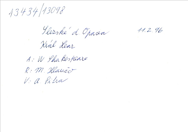 Playwright/Dramatist:William Shakespeare; Translation:Alois Bejblík; Adaptation:Marie Procházková